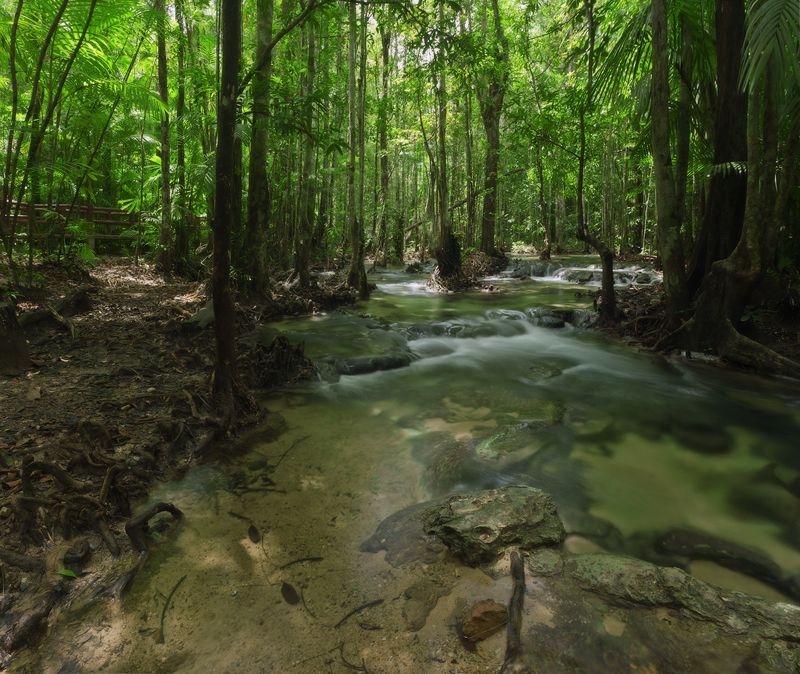 Crystal pool - это маленькое озеро в тропическом лесу, оно голубовато-изумрудного оттенка...купаться в нем запрещено, нет рыб и со дна поднимаются пузырьки газа...многие возможно знают это место в провинции Krabi, в любом случае я решил поработать здесь и сделал панораму.