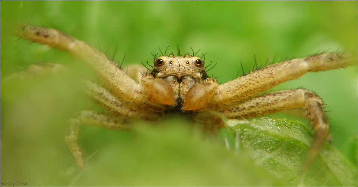 Я тоже снимал этого охотника, но не таким крупным планом. Колоритный паук.