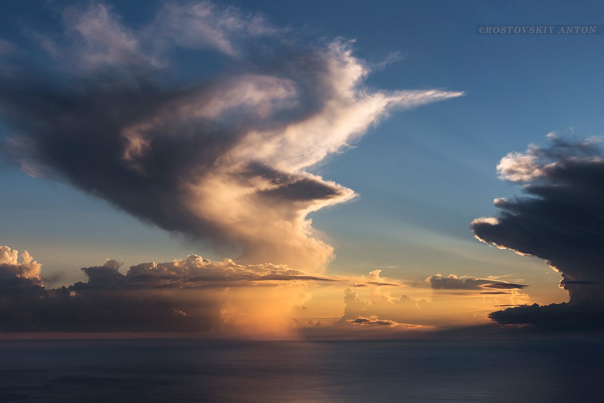 Закат, небо, гроза, Сочи, море, Антон Ростовский