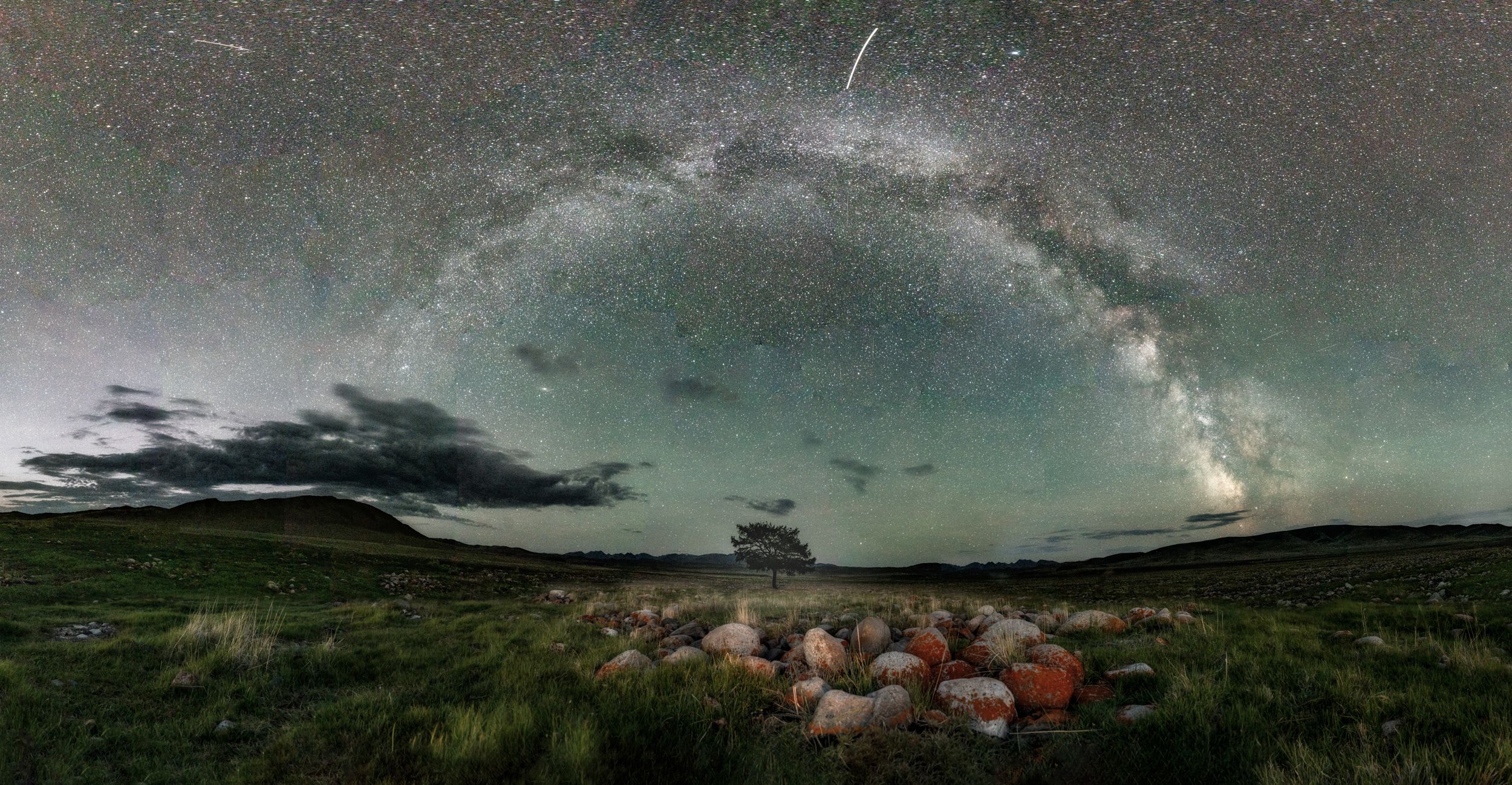 Ночь в долине реки Юстыт, на кадре представлено одно, единственное во всей долине дерево! Сложный кадр как технически(2 панорамы 1-земля, до наступления полной темноты и 2 небо-после проявления млечного пути)