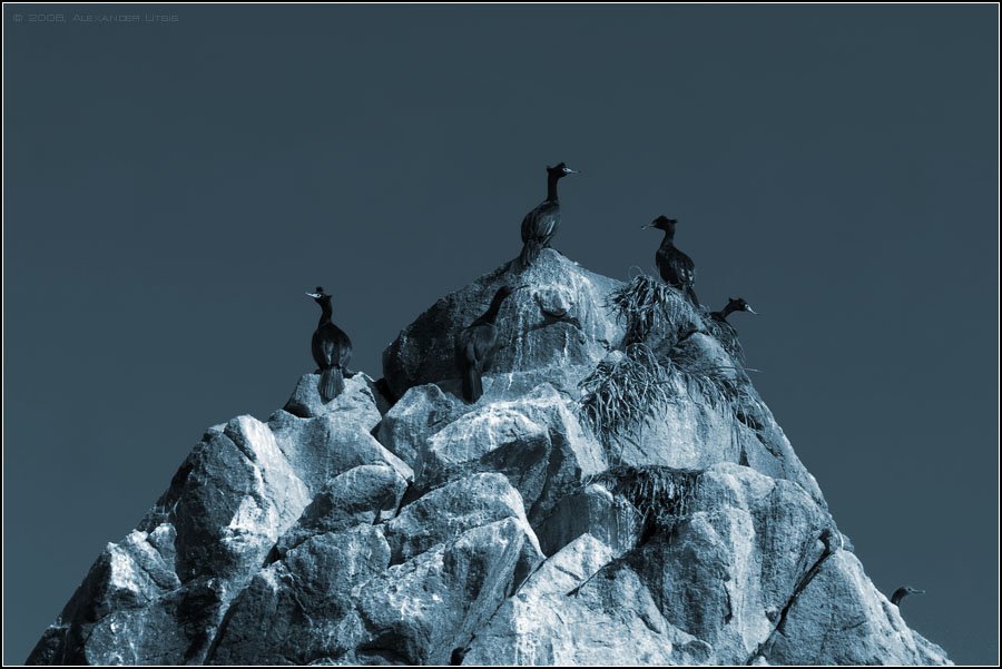 Красиво, а вообще бакланы смешные птицы, они приземляются на воду как на лыжах и сушат свои крылья очень забавно....