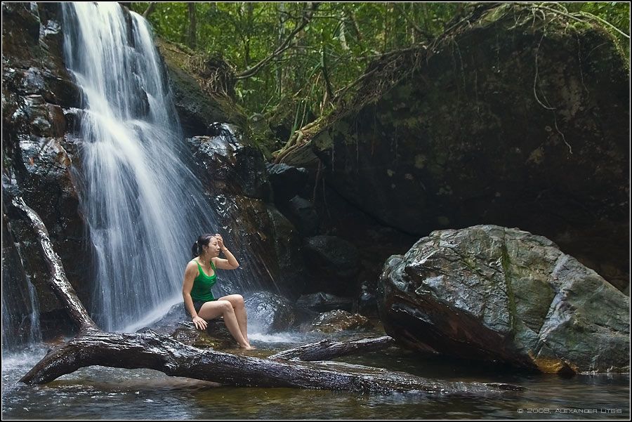 водопад,девушка,речка,камни,джунгли,лес,купание, Александр Лицис
