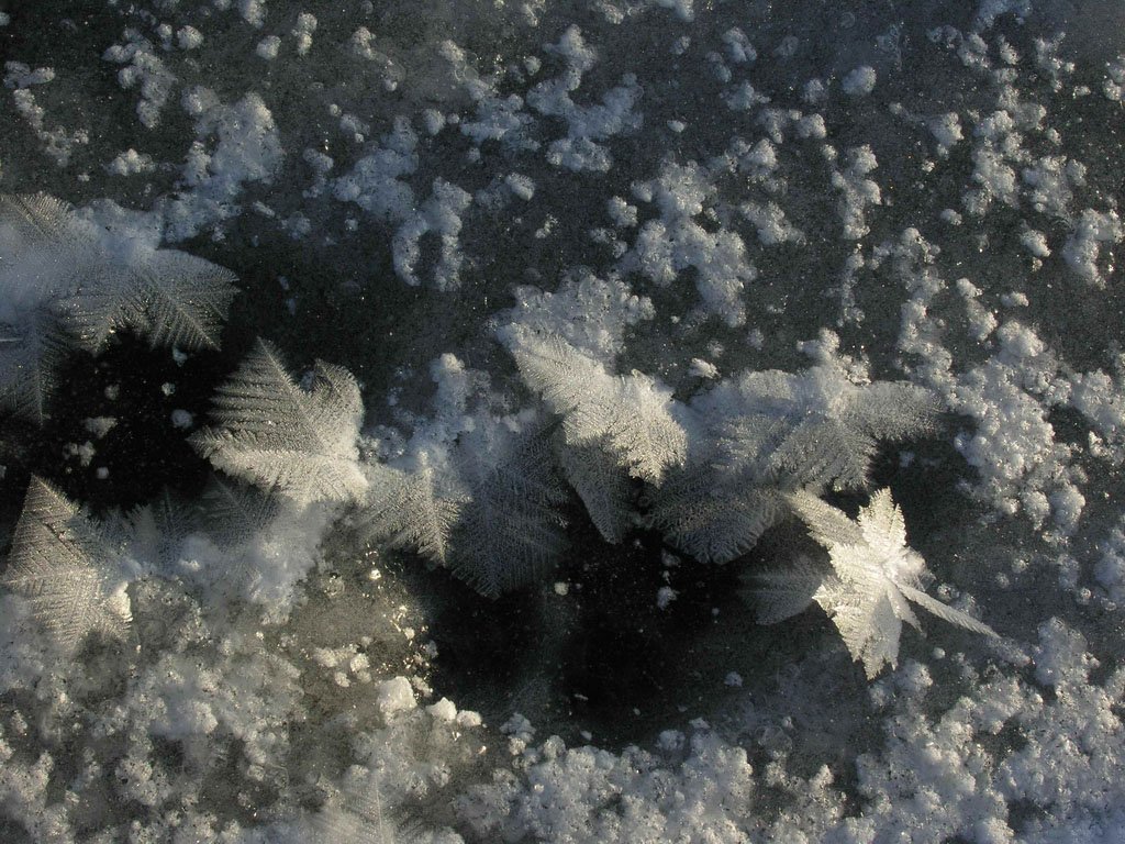 4 января 2008 г. Волоколамский район Моск.обл.Ночью было минус 24, днем -минус 19. На речке выросли такие кристаллы. Были и такие, что напоминали розочки.