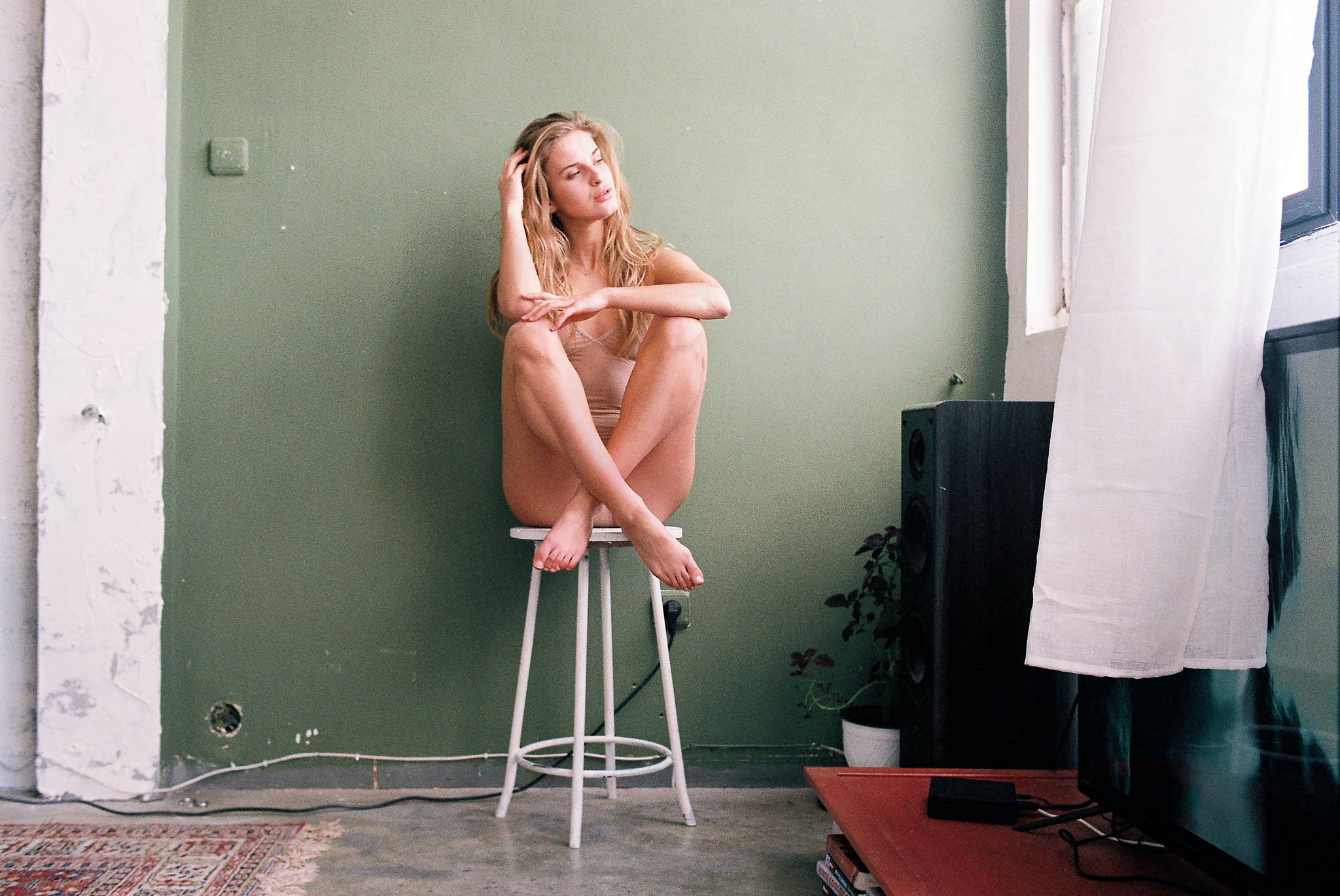 Erik, there is something quietly honest about how the light catches her form against that green wall. It feels less like a pose and more like a moment of stillness.