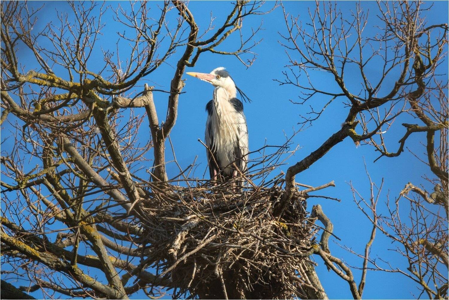 Серые цапли в период гнездования. Тульская область. Апрель.