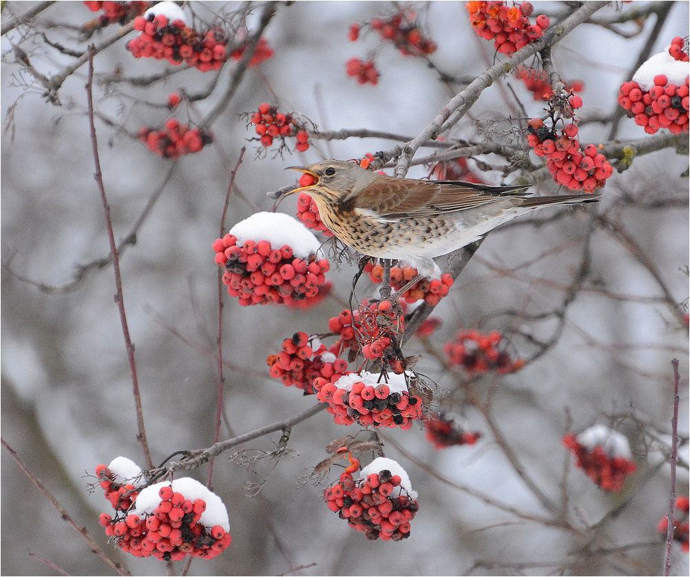 Дрозды рябинники - любители вкусно поесть)