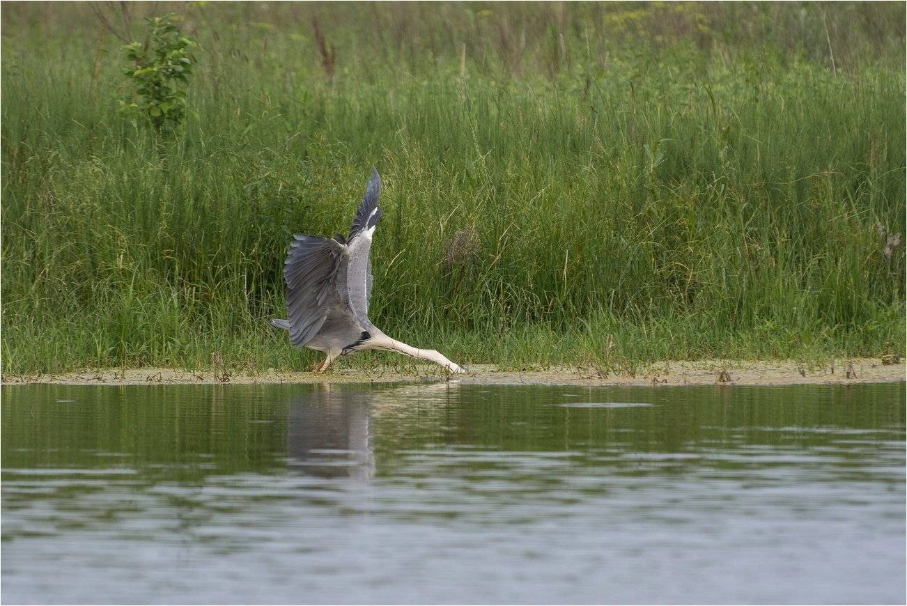 Серая цапля охотится...