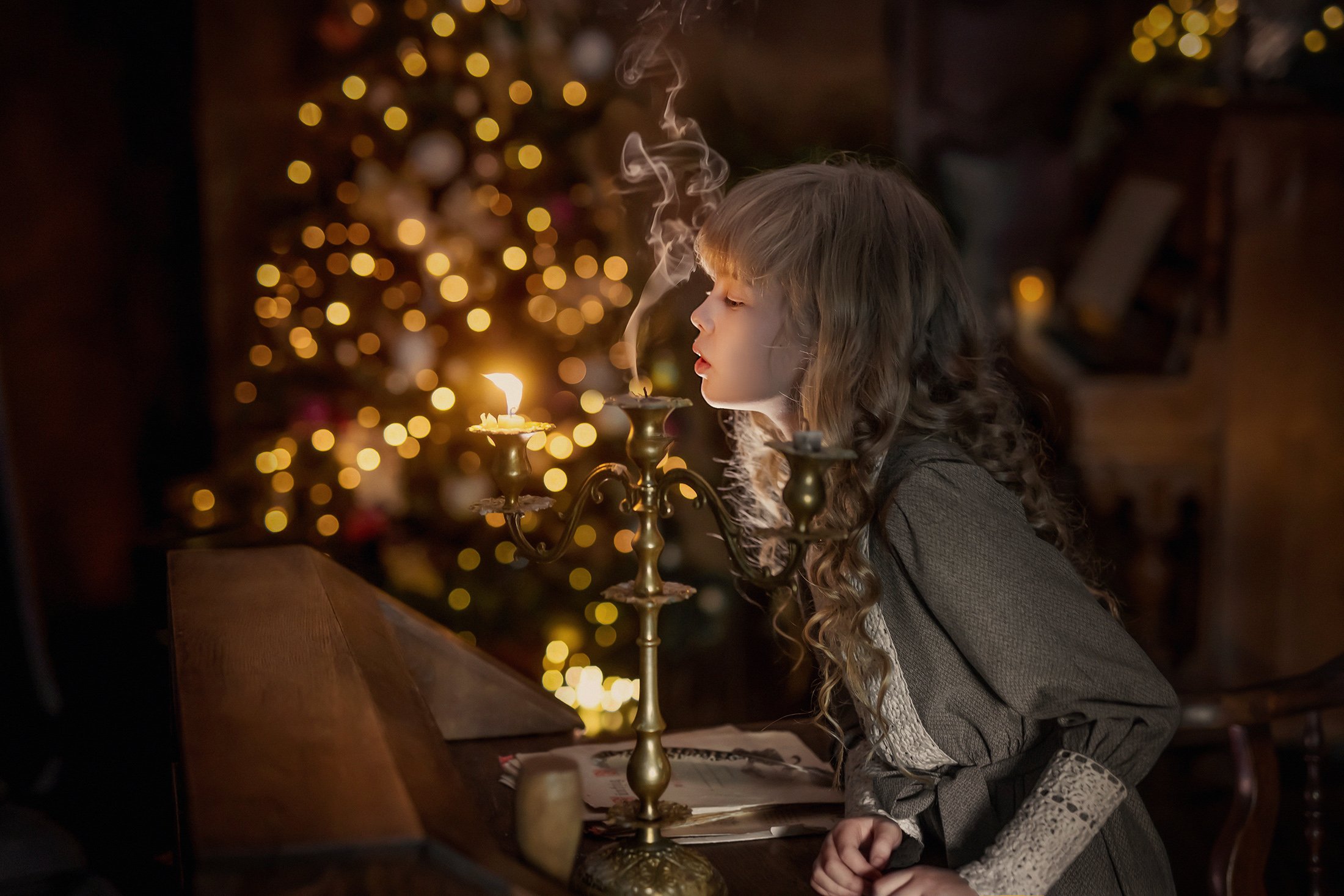 винтаж, ретро, рождество, свеч, новый год, темный ключ, дым, детский портрет, Наталья Русских