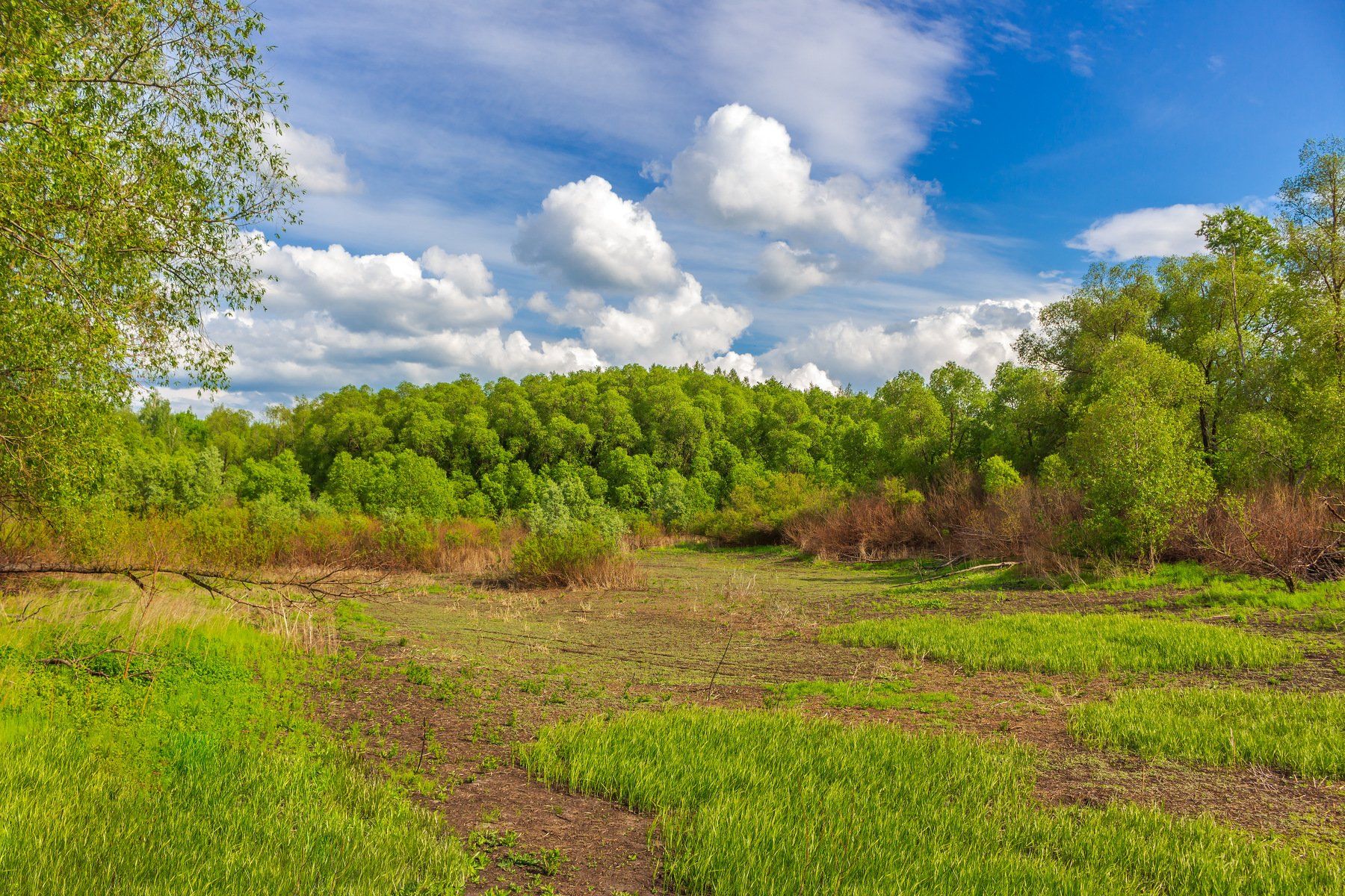 облака, лес, пересохшее озеро, небо, лето, засуха, Руслан Востриков