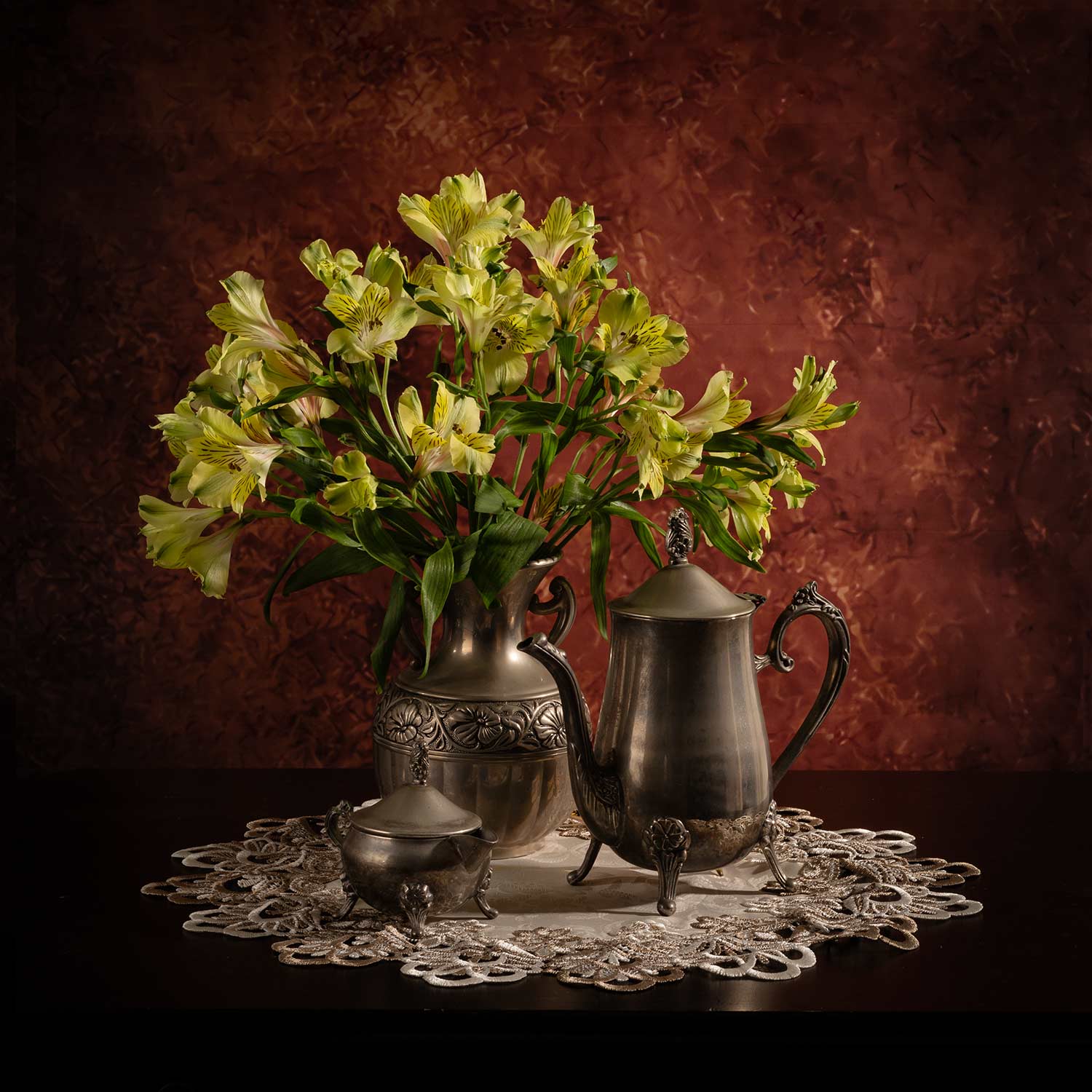 кофейник, молочник, ваза, цветы, салфетка., Рут