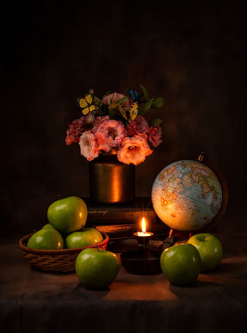 яблоки, глобус, свеча, цветы., Рут