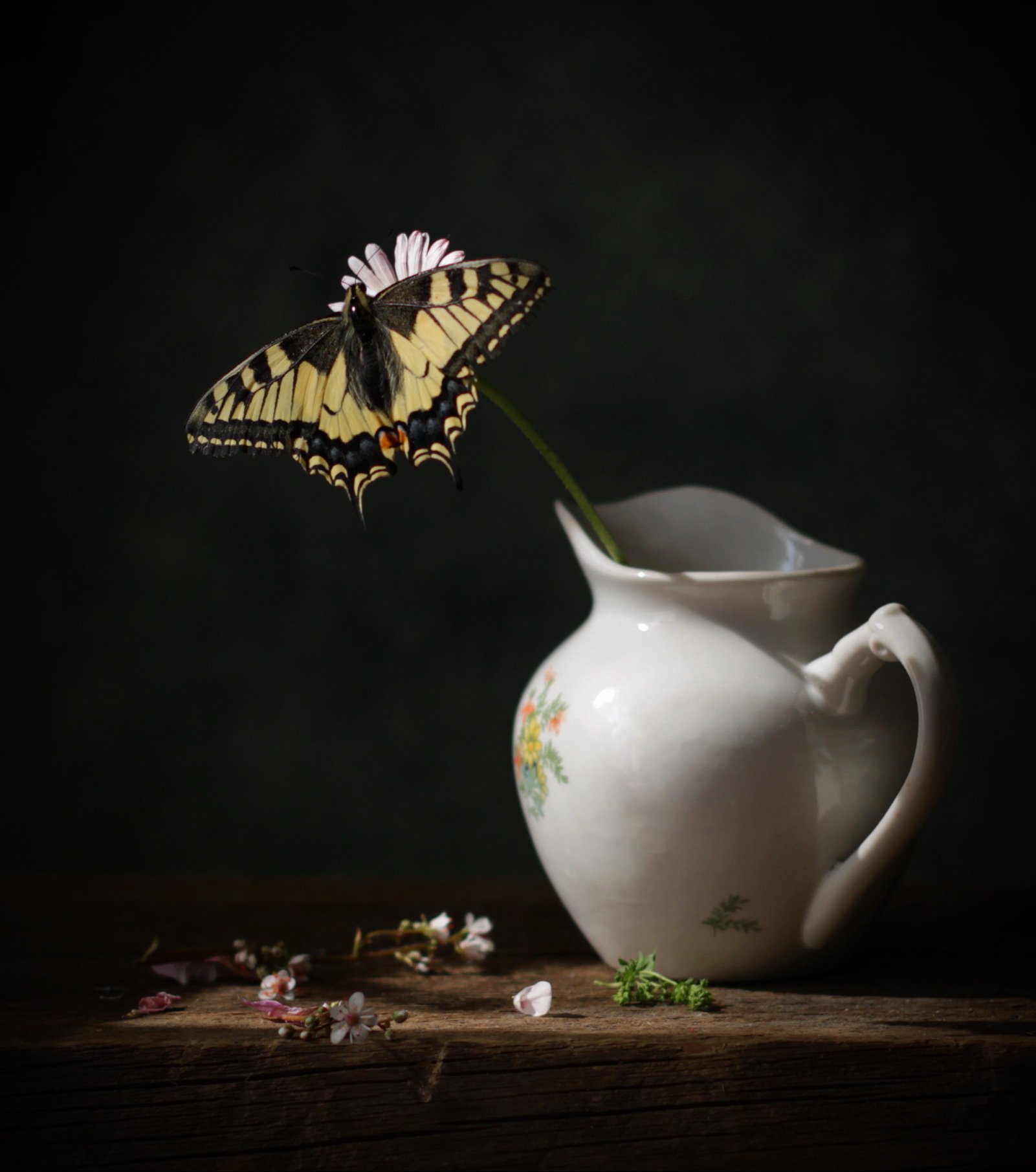 натюрморт, бабочка. цветок, кувшинчик, Галина Рябикова-Багузова