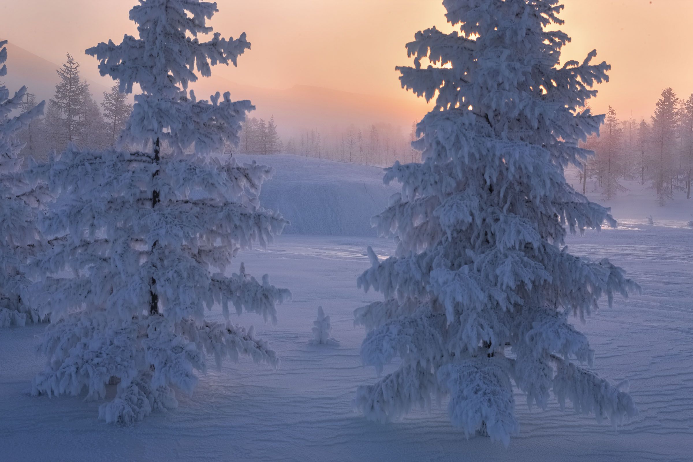 Зимние наледи на Колыме явление красивое и опасное. На снимке одна из наледей под Сусуманом. Наледь за зиму сильно наросла и разрослась. Между лиственниц виден бугор изо льда. Это образовалось вспучение на наледи. Оно образуется там, где вода в реке сильно давит на лед, ломает и прорывает его. Иногда на наледи лед взрывается, и вода летит вверх фонтаном. Кроме того, даже в самые сильные морозы вода прорывает наледь и натекает на нее. Поэтому ходить по наледям зимой нужно в непромокаемой обуви. Температура на снимке ниже сорока градусов, стылое солнце садится за сопки. Часто деревья погибают от наледей, если земля промерзает до самых корней деревьев. Вообще ходить по наледям на осторожно, прежде, чем наступить ногой, надо пробовать лед на прочность. Я знал людей, которые провалились в наледь и отморозили в итоге и ноги и руки. До домика было более четырех километров.
