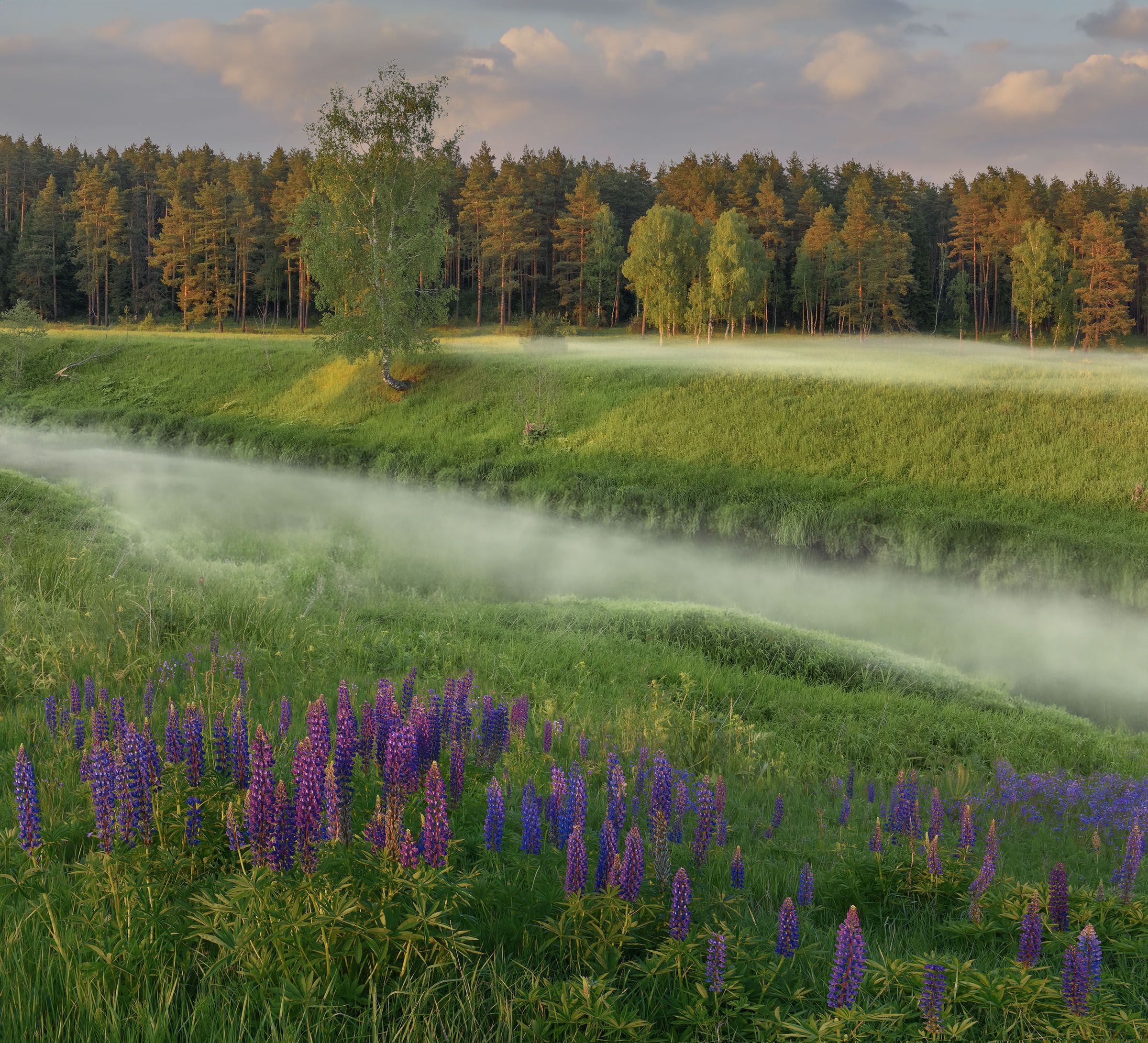 Я часто ездил во владимирскую область в Карабаново. Места там особенные, как-то связано с почвой. К сожалению, я не ботаник, хотя, наверное, мог им, и быть, и был бы в этой профессии, наверное, вдохновленным – живая природа всегда занимала меня. Так вот во владимирской области вдоль рек достаточно чисто, иногда растут отдельные деревья. Причем такое наблюдается не только на одной какой-то речке, а на многих, где я побывал. Причем иногда оттуда ехал в Москву через Черноголовку, а не через Александров и Ярославское шоссе, когда заканчивалась владимирская область и начиналось Подмосковье – протекает река Клязьма. Она заросшая до такой степени, то к ней никто не сможет продраться и сделать хотя бы один снимок, кругом кусты необычайной густоты. Тем и ценны места вокруг Карабанова – фотографичностью. На эту реку я приезжал несколько раз. Лучше всего приезжать в июне, когда зацветает вся округа, все поля и приречные места. Днем прошел небольшой дождичек и к вечеру немного затуманило.