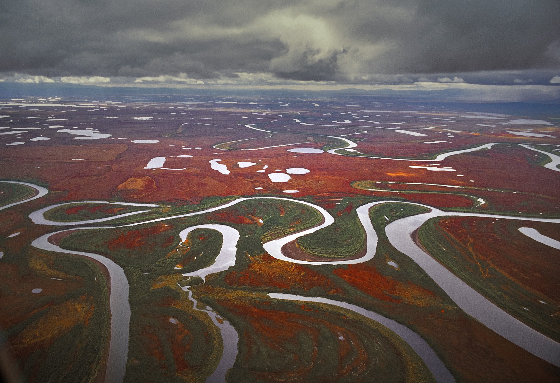 Осенние краски Северо-Востока России имеют такие тона. Это и на Камчатке, Корякии, Чукотке, Колыме, Якутии... Ближе к Западной Сибири осенние тона становятся ближе к оранжево-желтоватым