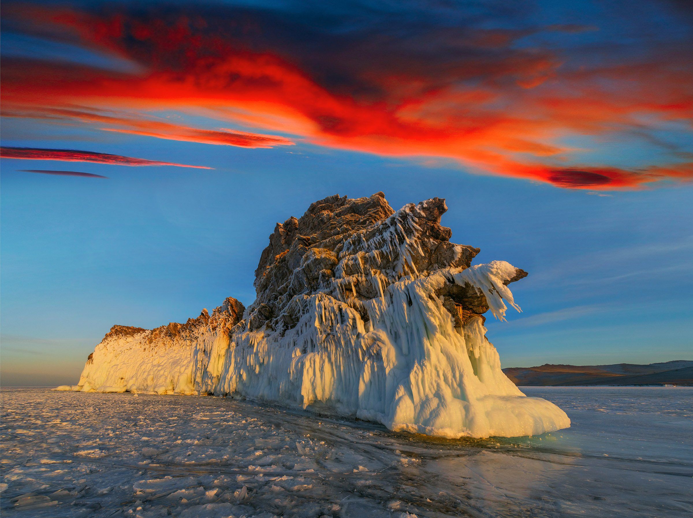 На Байкале как правило хорошая погода, которая имеет обратную сторону: не хватает красивых и удивительных облаков. И глухие пасмурные дни не очень удачны для фотосъемок, но и дни, когда голубой небосвод абсолютно чист, тоже не очень приветствуются фотографами - все хотят необычных облаков. Это очень сильно изменяет снимок, дает ему настроение, вообще преображает природу и пейзаж, делает все волшебным и чарующим. Возможно, облака для фотографа самое главное, а пейзаж служит антуражем, в котором реализуются идеи фотографов. Возможно... Иногда на Байкале они бывают. Остров Огой на этом снимке похож на динозавра, открывшего пасть...