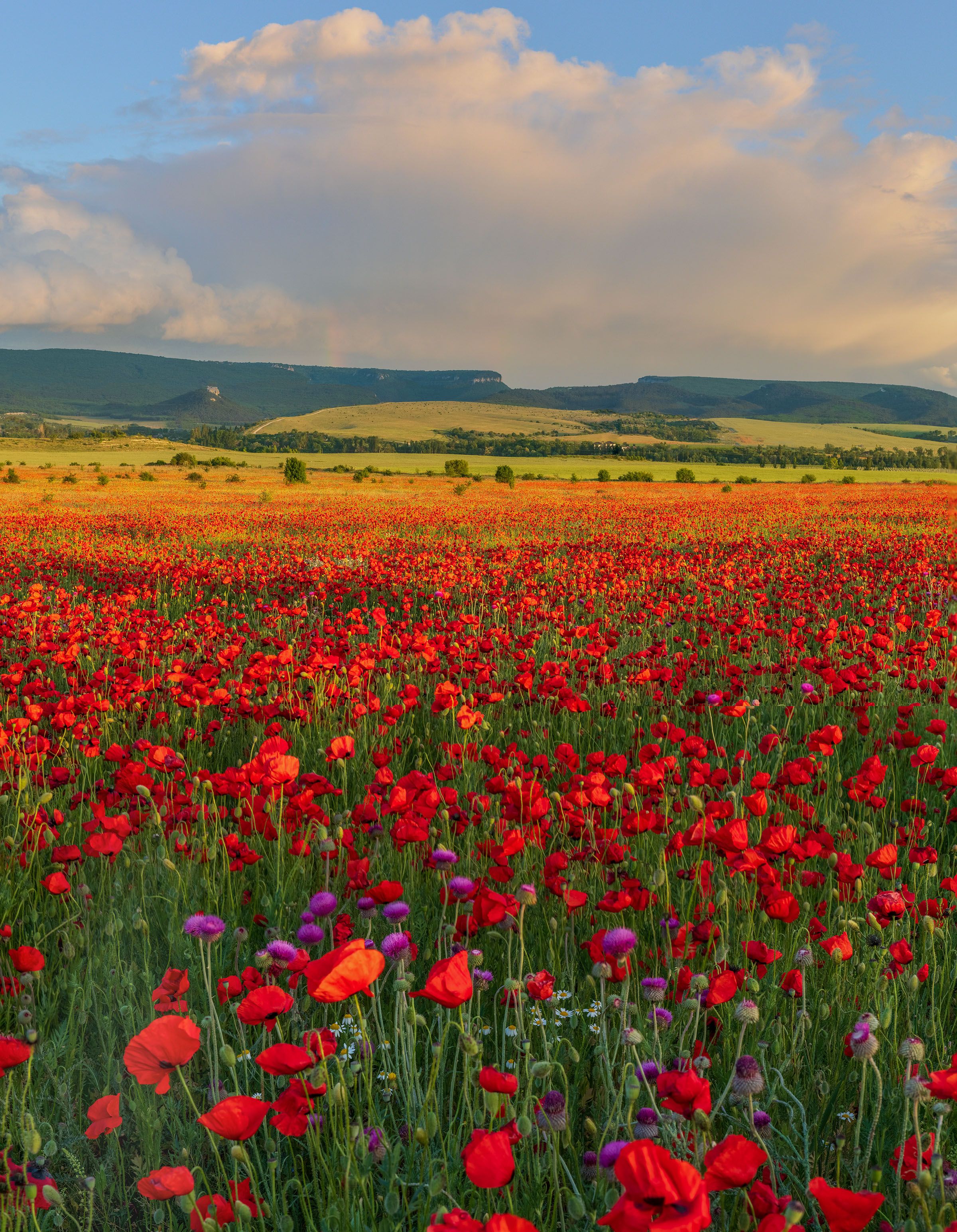 Позавчера вечером, напоенный солнцем, синим небом и роскошными алыми маковыми полями, вернулся из Крыма. Переливающиеся красными, алыми, бардовыми оттенками, поля Бахчисарая заворожили и пленили меня. В этом году Крым, безусловно – чарующие маковые поля. Меня охватывало какое непонятное дрожащее чувство счастья при виде этих красных полей, бесконечно сменяющихся один на другого. На дорогах останавливались сотни машин и крымчане и гости Крыма, как будто никогда не видывавшие алых маковых полей, забирались туда и фотографировались, фотографировались. Везде вдоль дорог на полях стояли сотни людей и щелкали телефонами себя, своих друзей, детей. Влюбленные фотографировась более серьезно – с большими фотоаппаратами, они по несколько часов фотографировали друг друга. В основном мужчины женщин. Хотя я, по сути, тоже фотографировал эти поля еще дольше их. И все было мало. Не хотелось уезжать из этого праздника жизни. Как же сильно действует красный цвет. По ночам и, особенно, утром, у меня перед глазами мелькали тысячи красных точек-огоньков. Это маки давали о себе знать моей зрительной системе. Маки в глазах исчезли только в Ростове.