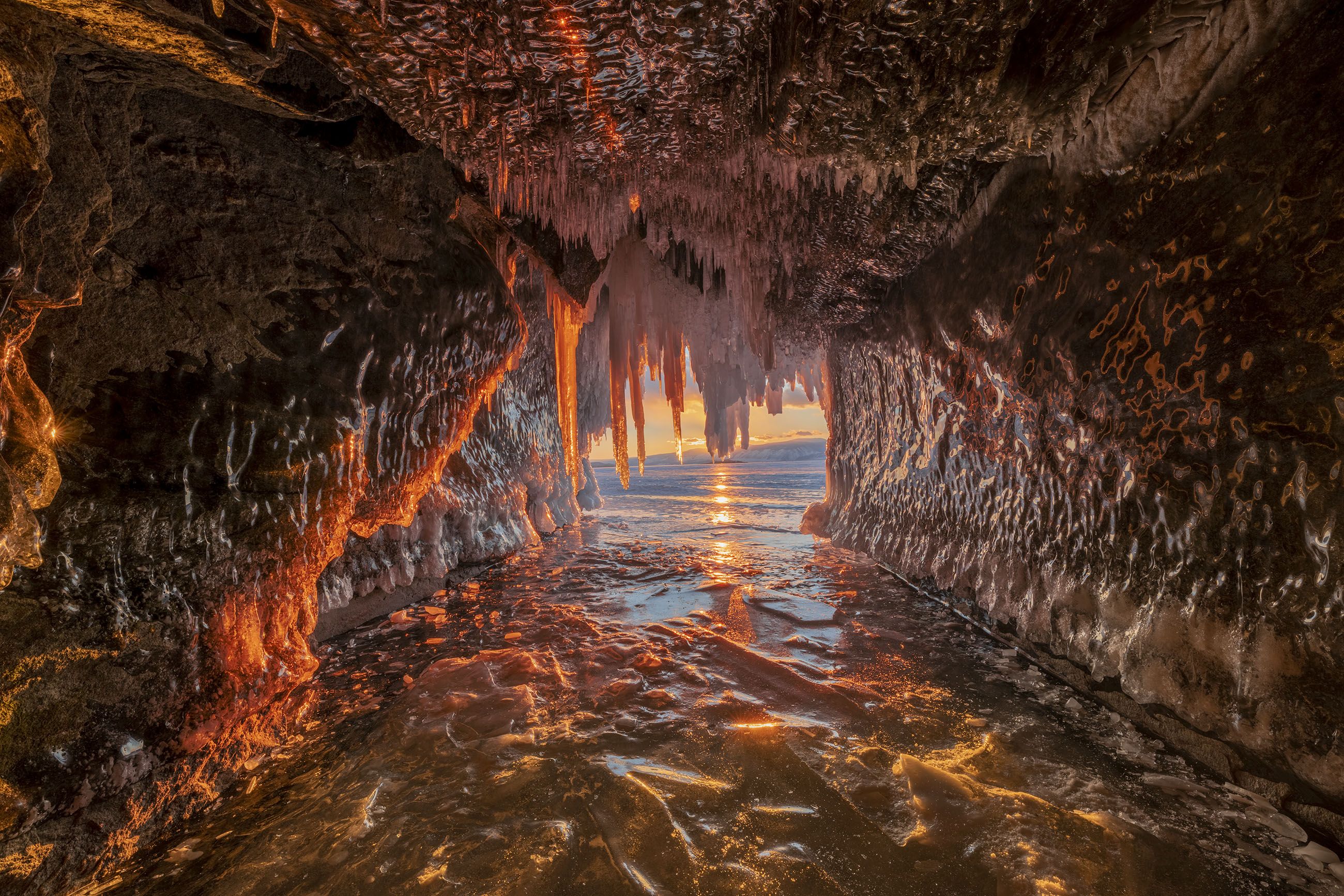 Сегодня вернулся с Байкала. Гроты и наплески – великолепны. Льда же почти нет, есть в бухте Ая, немного около Кобыльей Головы, у противоположного берега от Ольхона через Малое Море. В целом поездка шикарна. Хотя мы все понимаем, в какое непростое время мы все находимся. По ночам мало спал. Все ворочался. Ездили много по всяким заливам, мысам. Посещали уже известные гроты, некоторые были хороши, в других было мало наплесков и сосуль. Наискали много новых гротов. Наверное, первый раз я увидел их такое большое количество. Не хватило бы месяца, чтобы все заснять в режимное время. Снимали и ночные съемки и на Шаманке и в гротах. На снимке вечерний грот в скальной стене перед островом Огой, если ехать от Хужира. Тут через каждые двадцать-тридцать метров сплошные гроты.