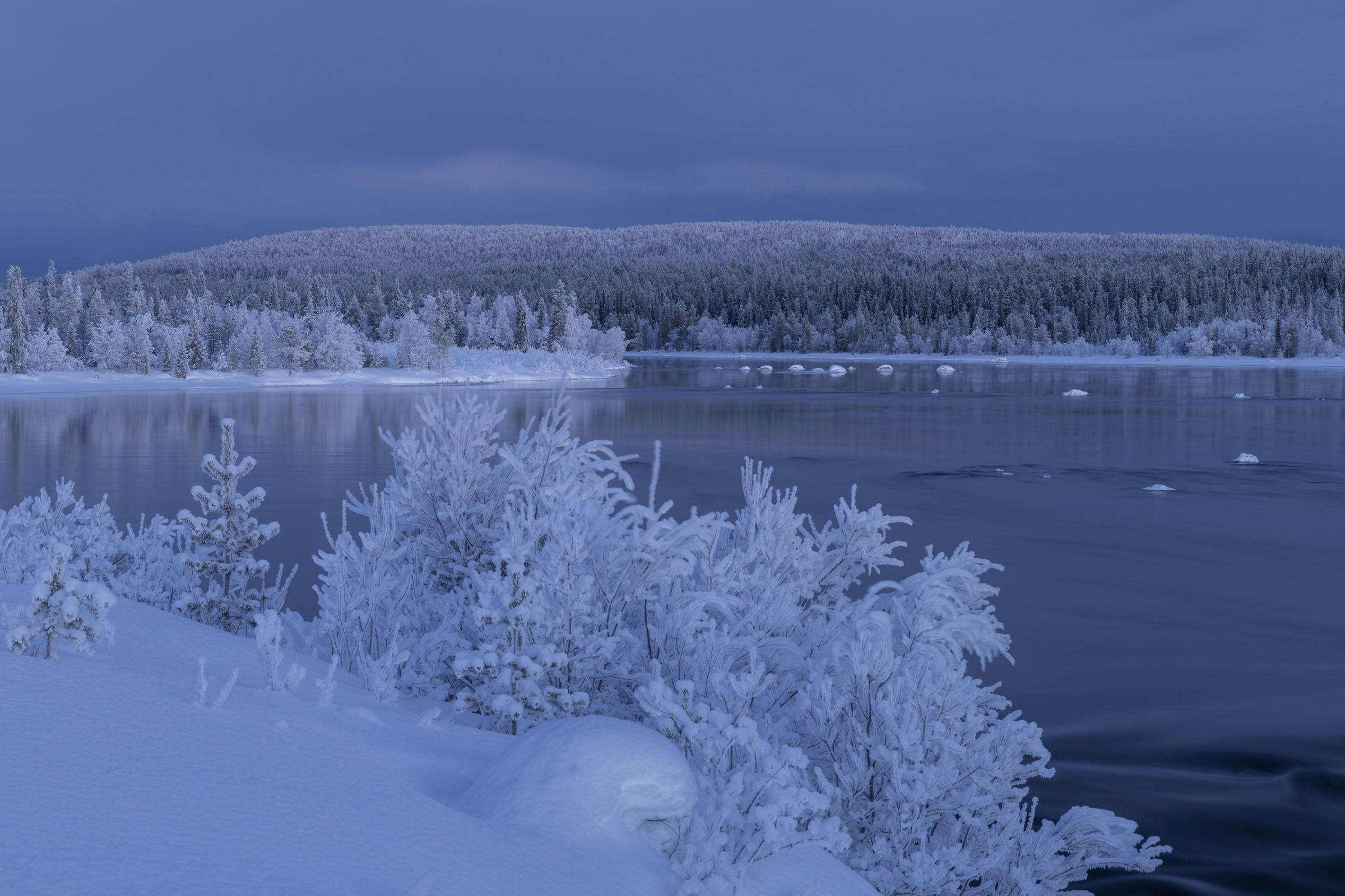 Двадцать девятое января. 8:56 утра. Мы стоим на большой обочине у дороги. Придорожное незамерзающее озеро на реке Пиренга. Темно-лиловая предрассветная мгла накрыла все окрестности своими удивительными объятиями. Хотелось и Пиренгу фотографировать при таком необычном и редком свете и озеро. Успел только озеро, пока до локаций на Пиренге доберешься – все закончится. Так и получилось. Но появился другой свет, рассветный с розовым небом и мы двинулись на снегоступах вдоль реки.