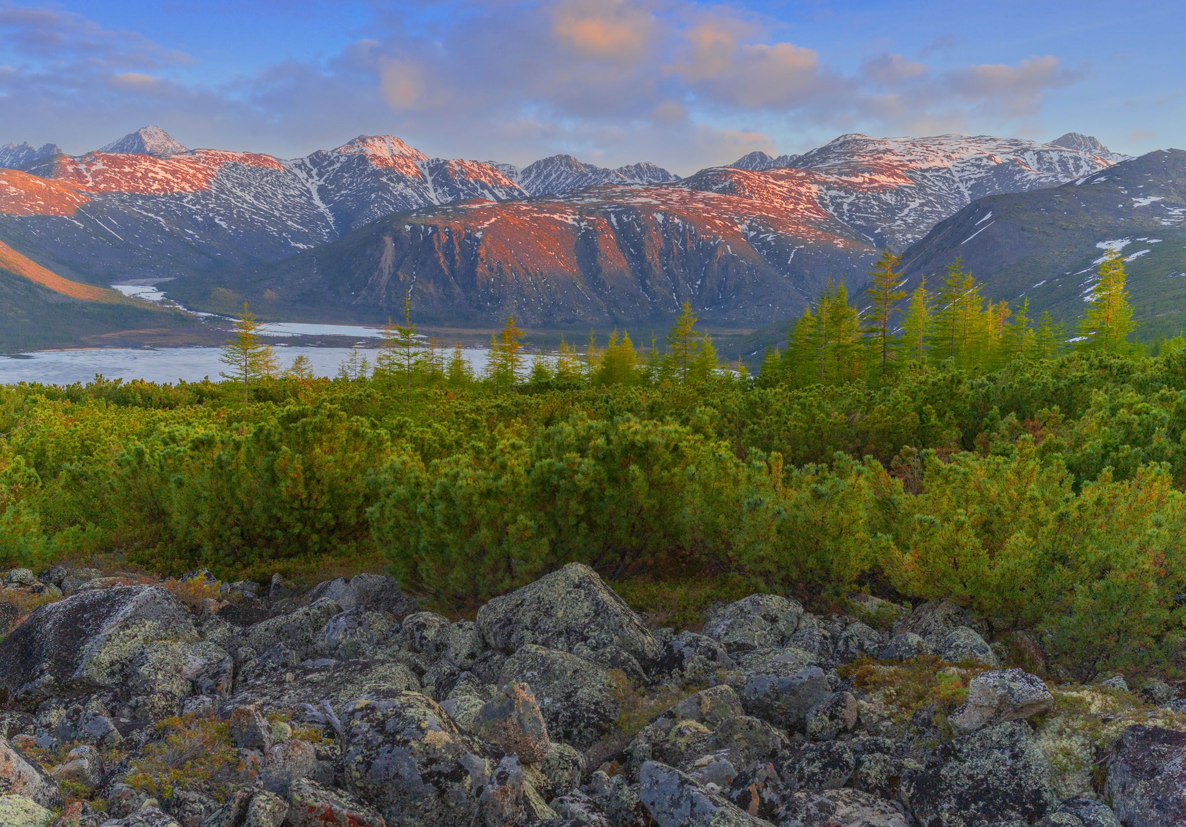 Лето на озере Джека Лондона начинается в начале июня, в первой декаде, как это ни странно звучит. Ведь лето формально начинается с июня. В Магадане в начале июня сурово – ледяные ветра и туманы. Леса стоят голые. В Сусумане 1-3 июня распускаются лиственницы и все становится замечательно зеленым. На озере Джека Лондона числа 5-10 июня тоже лиственницы распускаются. Кругом стоят нежнейшие смолистые фимиамы, комаров еще нет – настоящий рай. Лед на западной части озера Джека Лондона растает только к концу июня. Я улетал вертолетом с острова Вера 22 июня, лед покрывал эту часть практически полностью.
