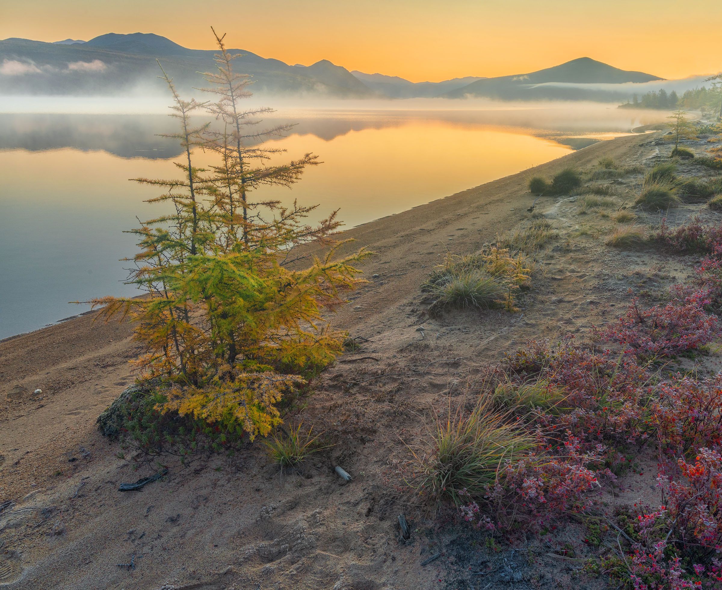 Когда-то в 1995 году на этом месте мы стояли с китайским фотографом Ю Юньтианем и фотографировали рассвет. Я снимал на пленку на Мамию RB 6х7 и canon, Ю снимал на Хассельлад и Nikon. Я помню, как говорил: Хассельблада – вери гуда. Так получилось, что потом мы потеряли следы друг друга. Я знаю, что он возглавлял потом Всекитайский Союз Фотографов, но я и туда писал. Ответов нет. Сейчас там другой председатель. В те годы он считался лучшим фотографом Китая. Мы познакомились на выставке в Пекине 10 фотографов мира. Я представлял Россию. Потом я был на озере много раз, да был и до 1995 года за год. Но эту локацию с правым устьем ручья Студеный я полюбил с того года, когда снимали вместе с Ю. Устье на снимке немного впереди, где золотится вода.