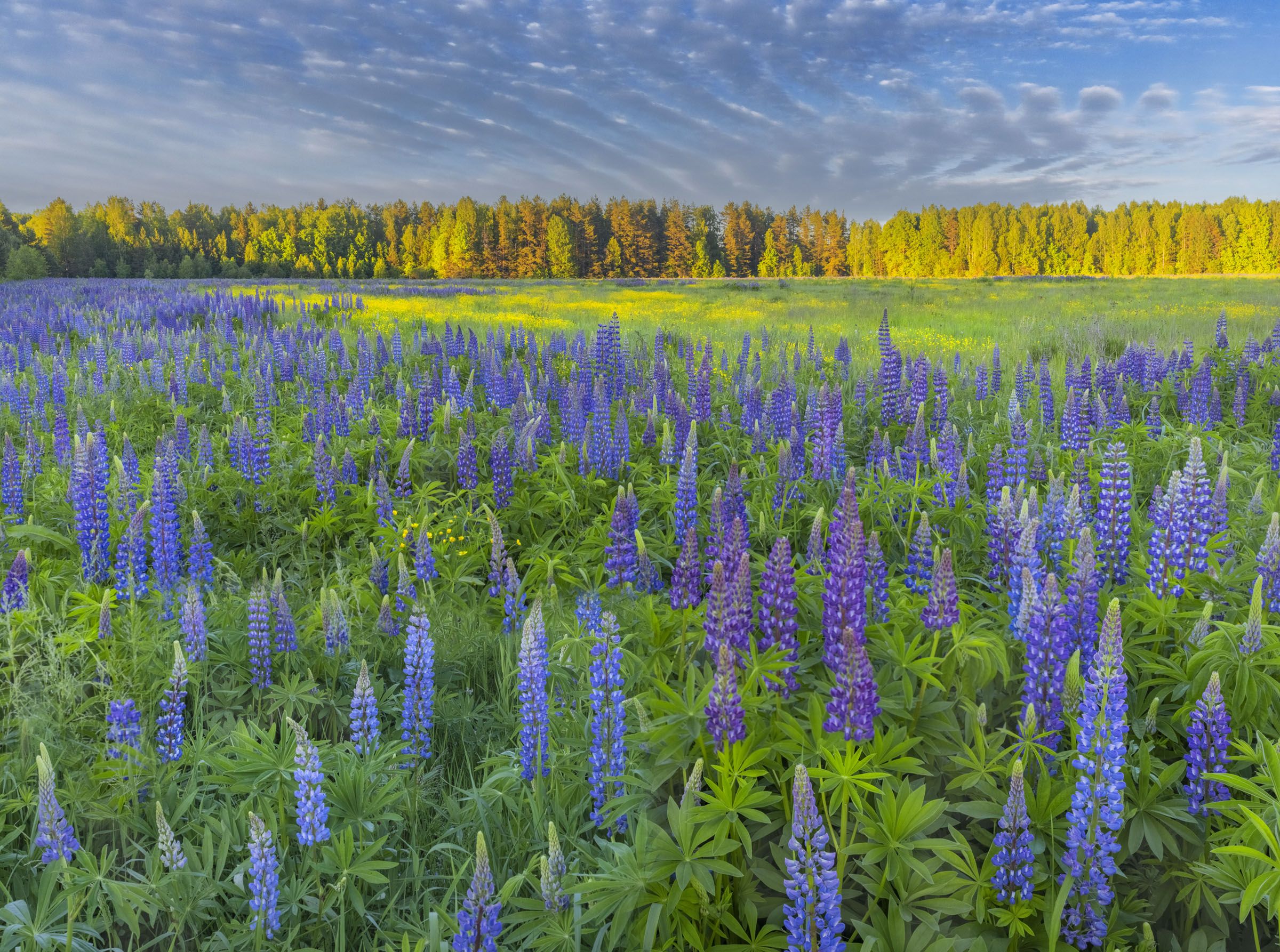 Когда я приезжаю туда, то каждое утро и вечер еду куда-то на фотосъемки. Это поле с люпинами я сфотографировал за деревней Каменное, по прямой, наверное, километров восемь, а ехать километров двадцать. Я часто приезжаю сюда, здесь никого никогда не бывает; так, иногда проедет случайная машина. Наверное, дивятся, что за чудило с треногой на поле. А мне там радость…