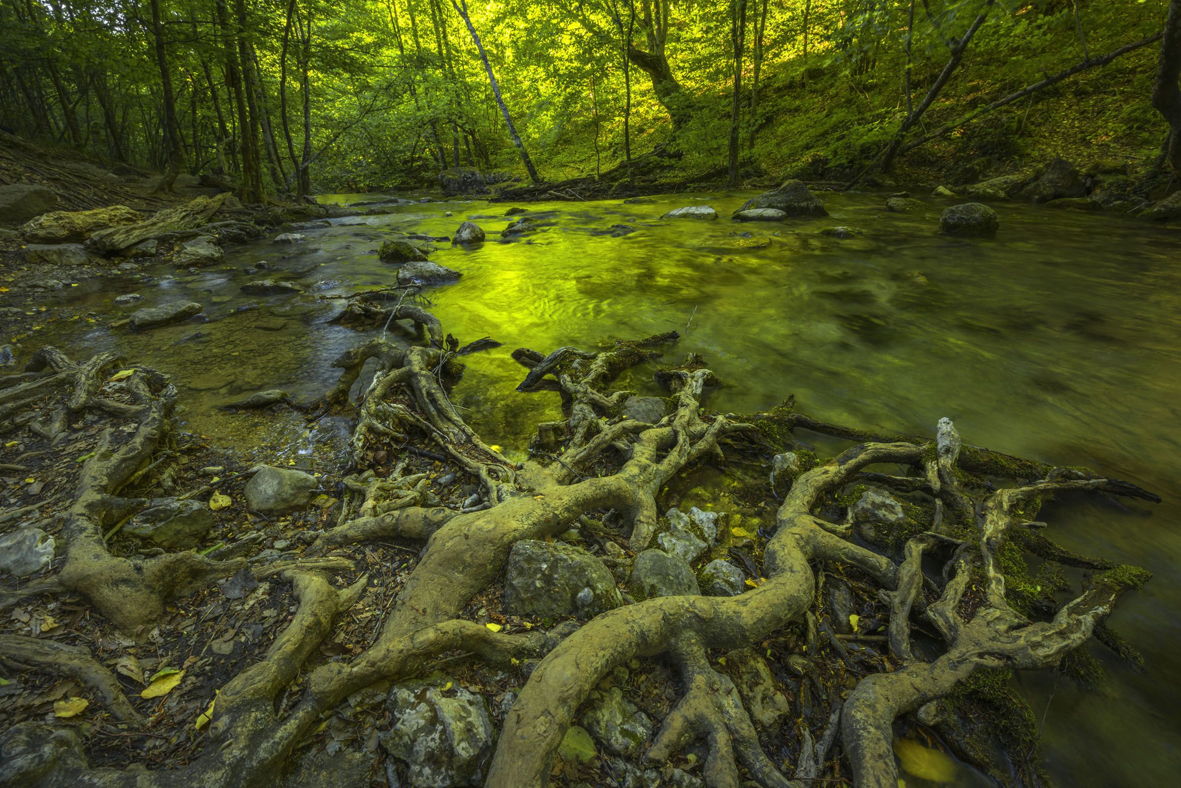 Крым, как и вся остальная природа, многолик. Здесь можно фотографировать всю жизнь и каждый раз находить или новые места и новое в старых местах. На снимке корни дерева, растущего на берегу реки, рядом с верхним водопадом Джур Джур. Снято с низкой точки съемки широкоугольником. Вообще в лесу надо фотографировать, когда нет прямых солнечных лучей, которые превратят снимок в немыслимую мельтешню. Только на удалении где-то возможны лучи. Запахи здесь в лесу на реке весной волшебные: как будто попадаешь в какую-то парфюмерную фабрику, наполненную сильными и в то же время ненавязчивыми изумительными ароматами деревьев и трав. Все благоухает, кругом поют птицы. Здесь земной рай…