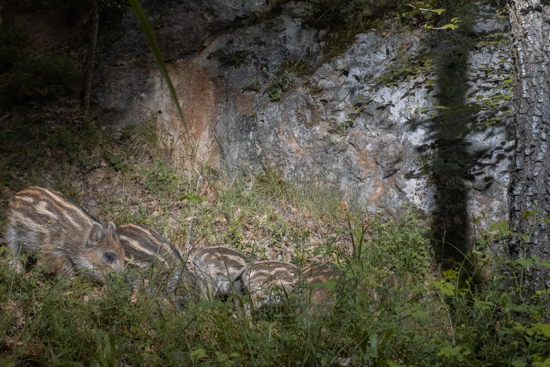 \"Moonlight drips through the trees as eleven shadows move as one - wild boars weaving through the night like ancient spirits of the forest, drawn by the scent of earth and memory.\"