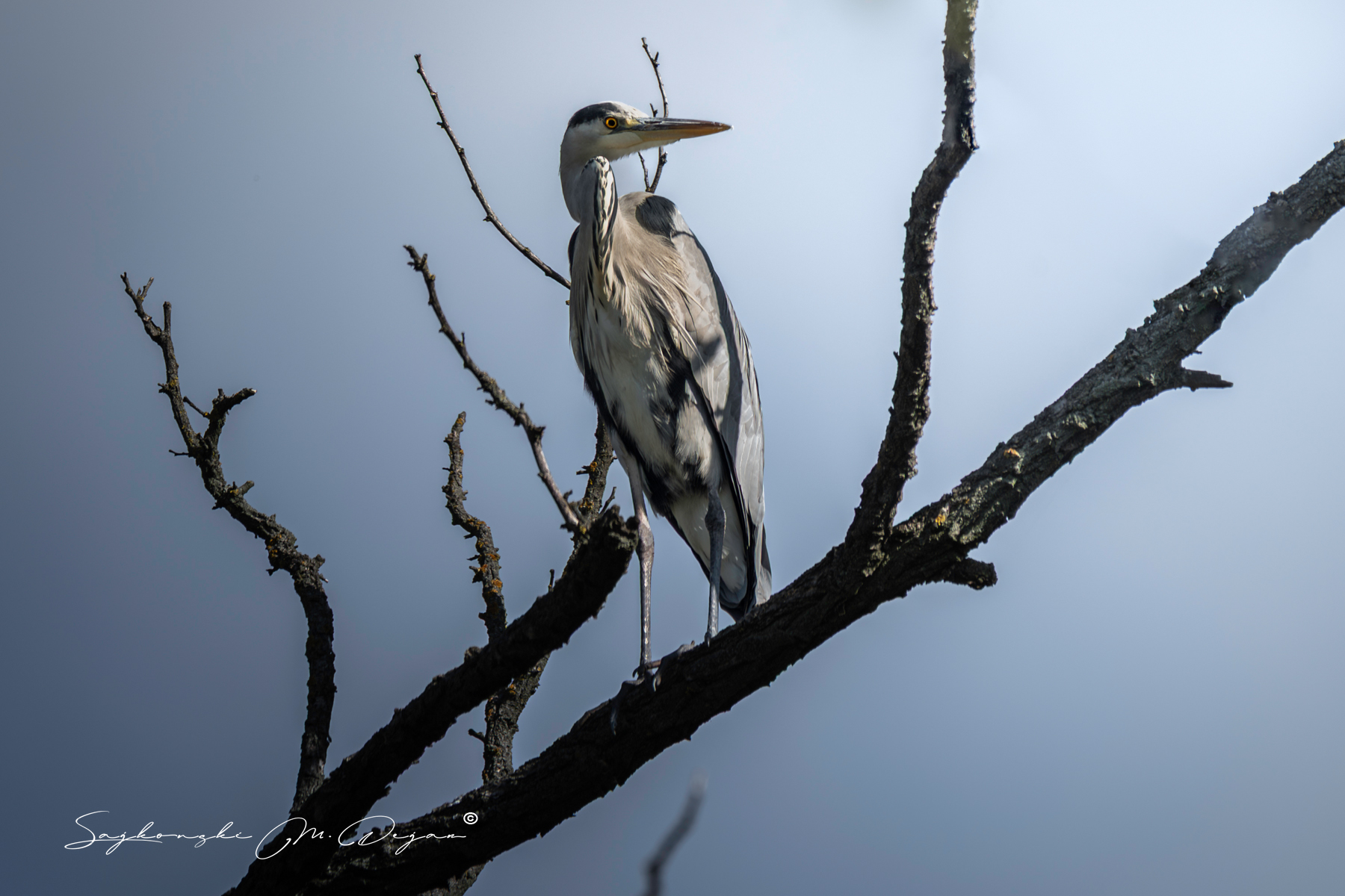 The heron holds the frame with quiet presence, its form sharp against the soft sky. The branch’s texture adds weight, and the light on the feathers is clean—consistent with Dejan’s steady hand.