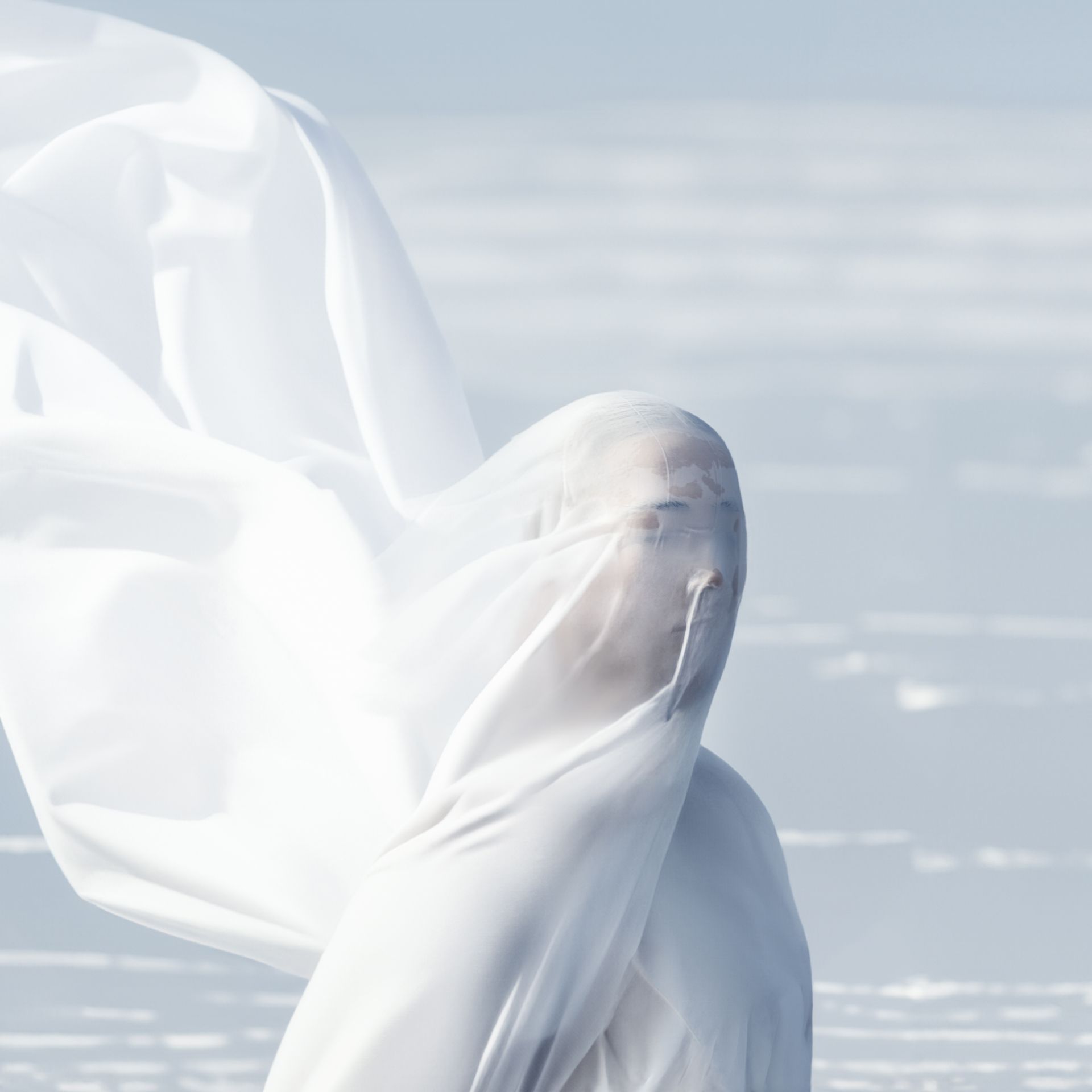 На закате солнца, на фоне соленого озера,где сливается небо и земля, окруженная летящей белой тканью. Это рождает безупречную гармонию с окружающей природой. Взмахи ткани создают движущиеся кадры, словно пробуждающие что-то внутри зрителя. Это фотосессия, наполненная таинственностью и красотой, увлекающая зрителя в мир мечты и вдохновения.