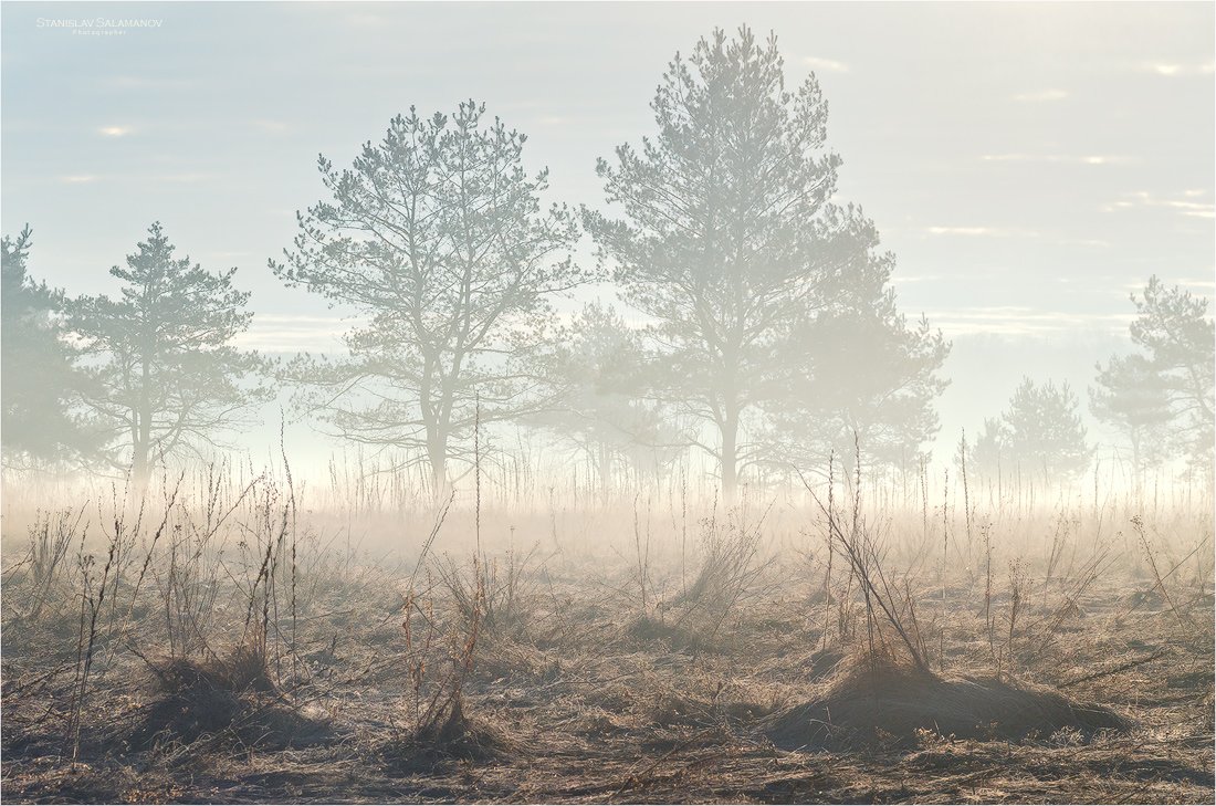 утро, туман, дымка, луг, весна, март, Станислав Саламанов