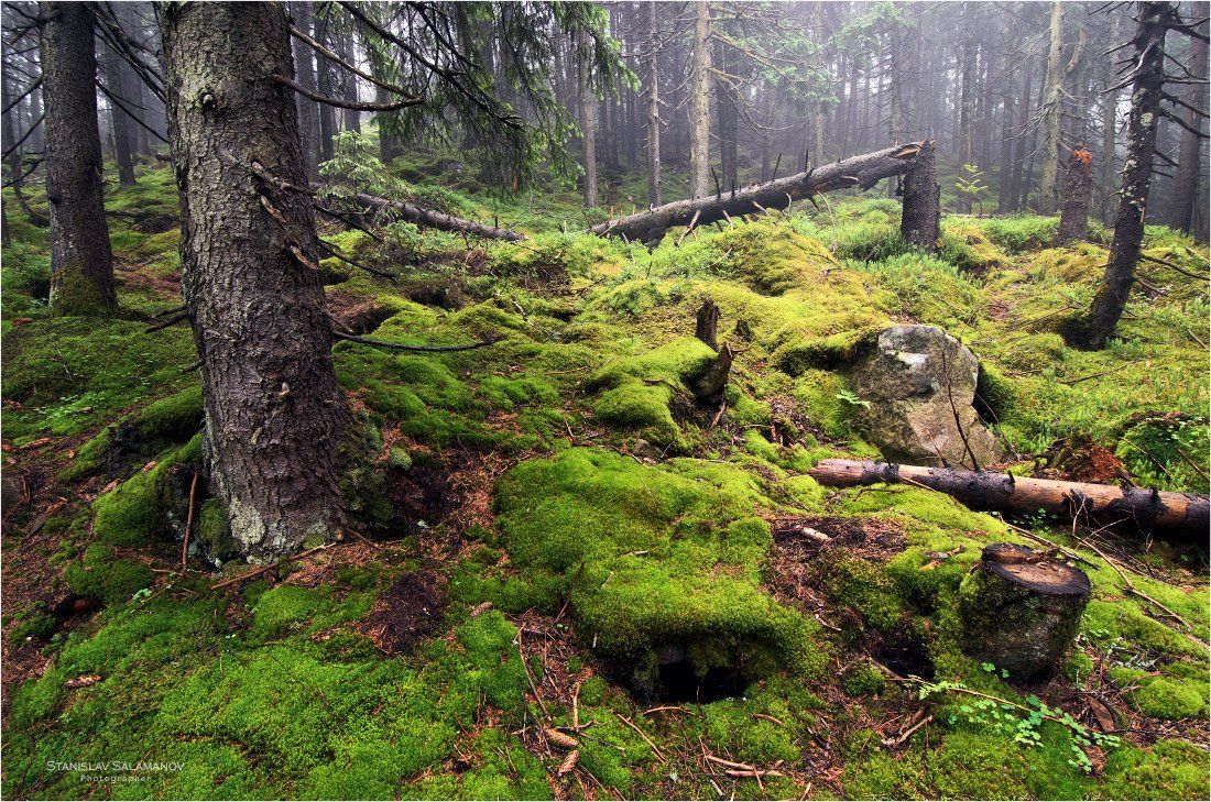 лес, горы, мох, дымка, туман, г. хомяк, карпаты, Станислав Саламанов