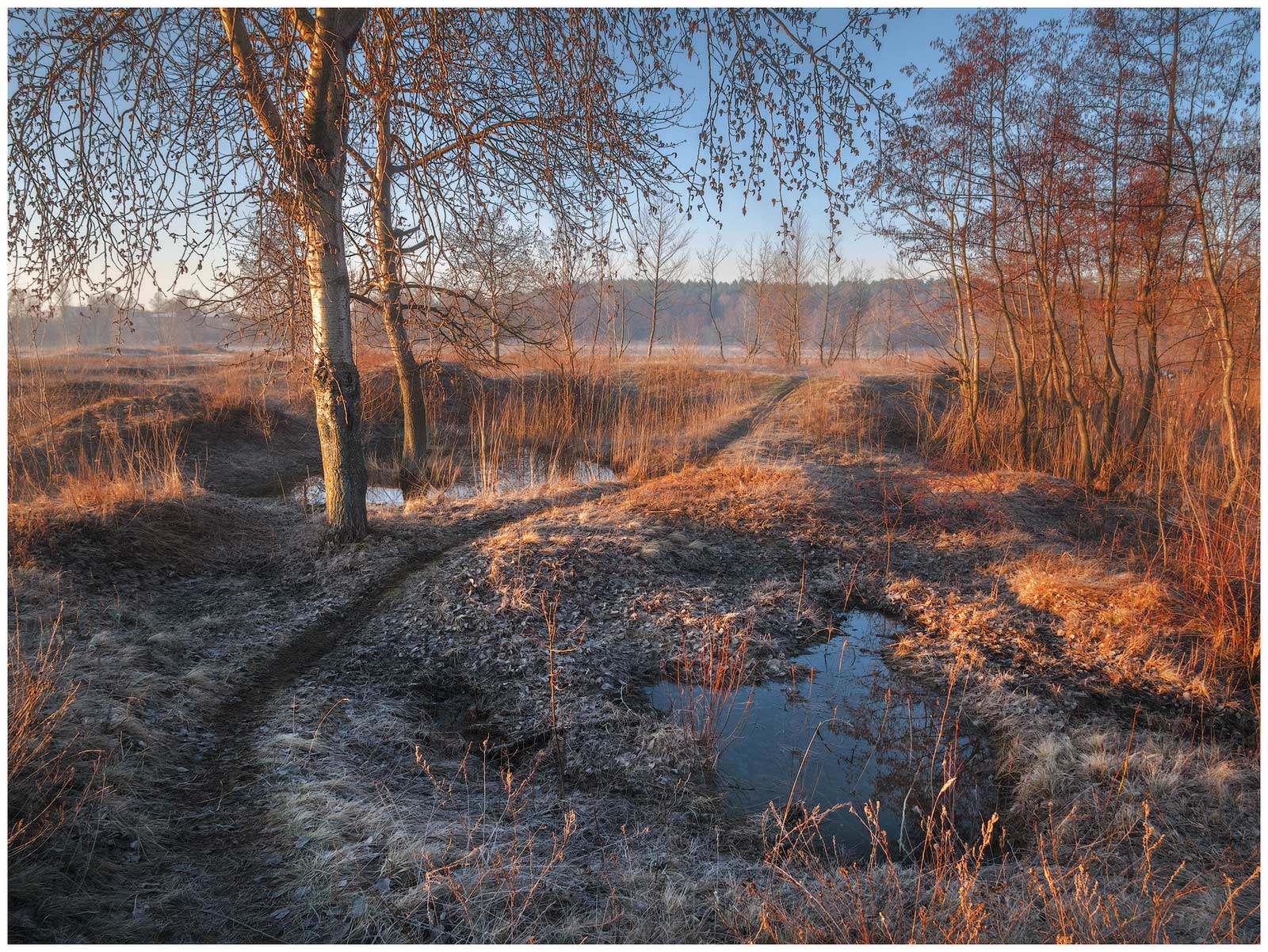весна,луг,пейзаж,рассвет,тропинка,утро,весенний пейзаж,заморозок,паводок,весеннее фото, Станислав Саламанов