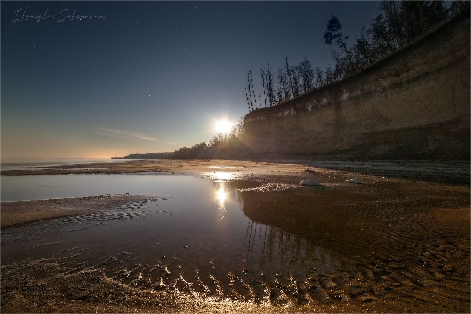 ночь, берег, пляж, отлив, лес, отражения, кручи, звезды, пейзаж, Станислав Саламанов