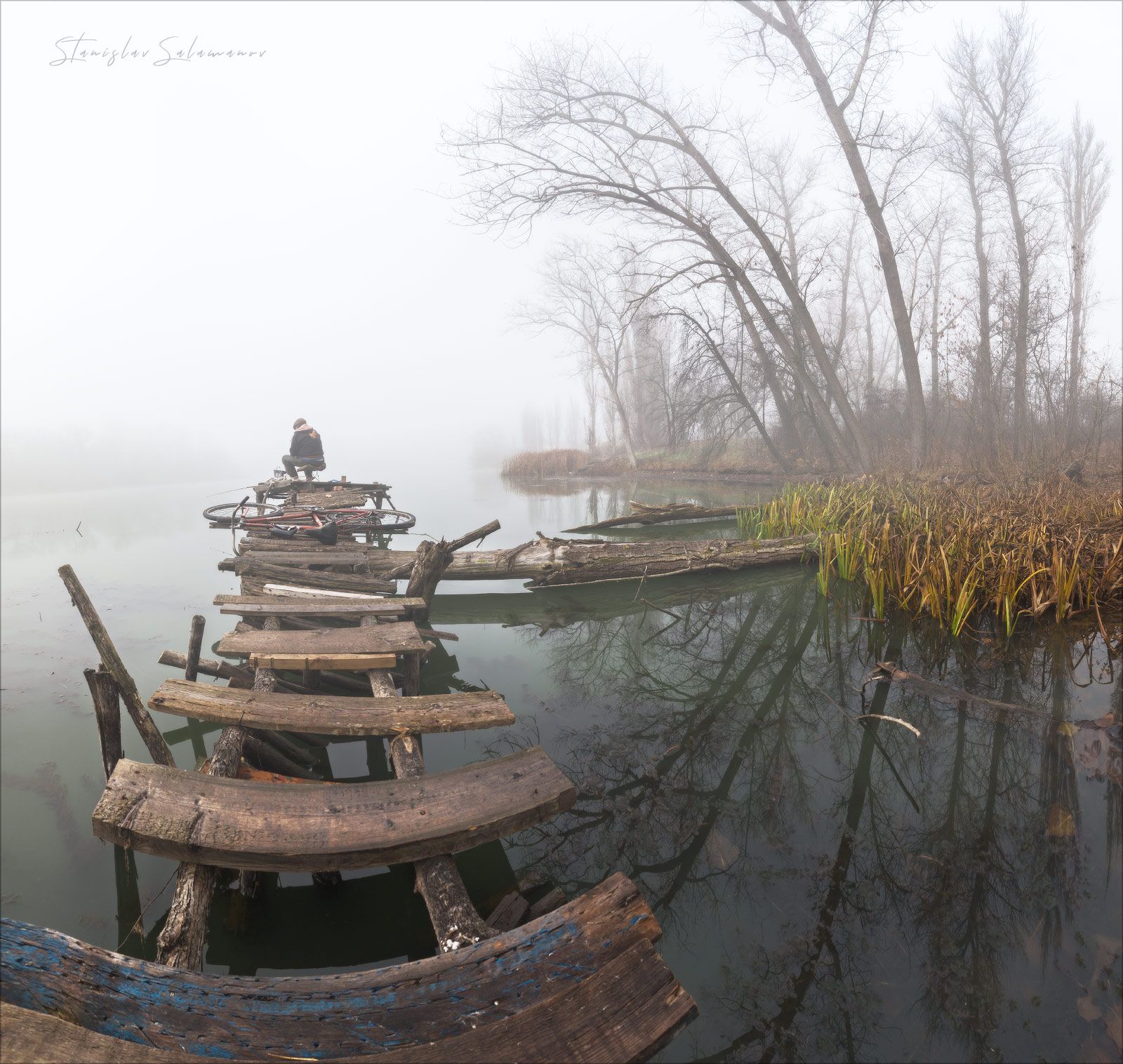 Сегодняшнее утро началось с небольшого разочарования. Проснувшись на рассвете, для того чтобы отправить сына в школу, я выглянул в окно и понял, что я упустил очередное пейзажное утро. За окном солнце только поднималось из-за домов, на небе виднелись облака, подсвеченные нежно розовым оттенком, а с земли усиленно поднимался туман, пробужденный от сумеречного сна, теплыми лучами солнца. Мне не привыкать, полюбовался этой красотой в окно, сфотографировал, воображаемый в голове, мега пейзаж и пошел собирать ребенка. Через десять минут я вновь посмотрел в окно, но солнца уже не видать и весь город погрузился в туман. Вот он мой отложенный туманный рассвет! Ребенка в школу и я свободен, хватаю фоторюкзак и к ближайшему водоему с мечтой, хоть что-то поймать в объектив. Этим утром мне любезно согласился позировать сонный рыбак, который, так же как и я не упустил возможность оттянуть закрытие осеннего сезона и пришел на водоем с надеждой что-то поймать. Не знаю, каковы его успехи, но я поймал рыбака в объектив своей фотокамеры. Показываю его вам )