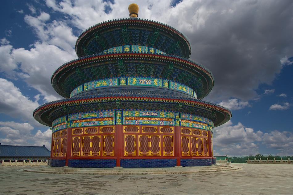 Храм неба расположен к юго-востоку от императорского дворца. Появился он в то же время, что и Запретный город, и первоначально действовал как храм Неба и Земли. Этим объясняется необычная архитектура здания (южная часть постройки имеет форму квадрата, а северная округла): согласно китайской традиции, круг символизирует Небо, а квадрат — силы Земли; с тех пор в стенах Тяньтаня возносились молитвы исключительно Небу. В течение почти 500 лет раз в году, в день зимнего солнцестояния, императоры прибывают сюда, чтобы после трехдневного строгого поста принести Небу щедрые дары. Считалось, что у владыки Поднебесной божественное происхождение, поэтому только император имеет право обращаться к Небесам с молитвами о процветании государства. Властитель заклинал ветер, дождь, жару и холод, чтобы они появлялись именно тогда, когда назначено вековечным природным циклом, — это было залогом хорошего урожая.