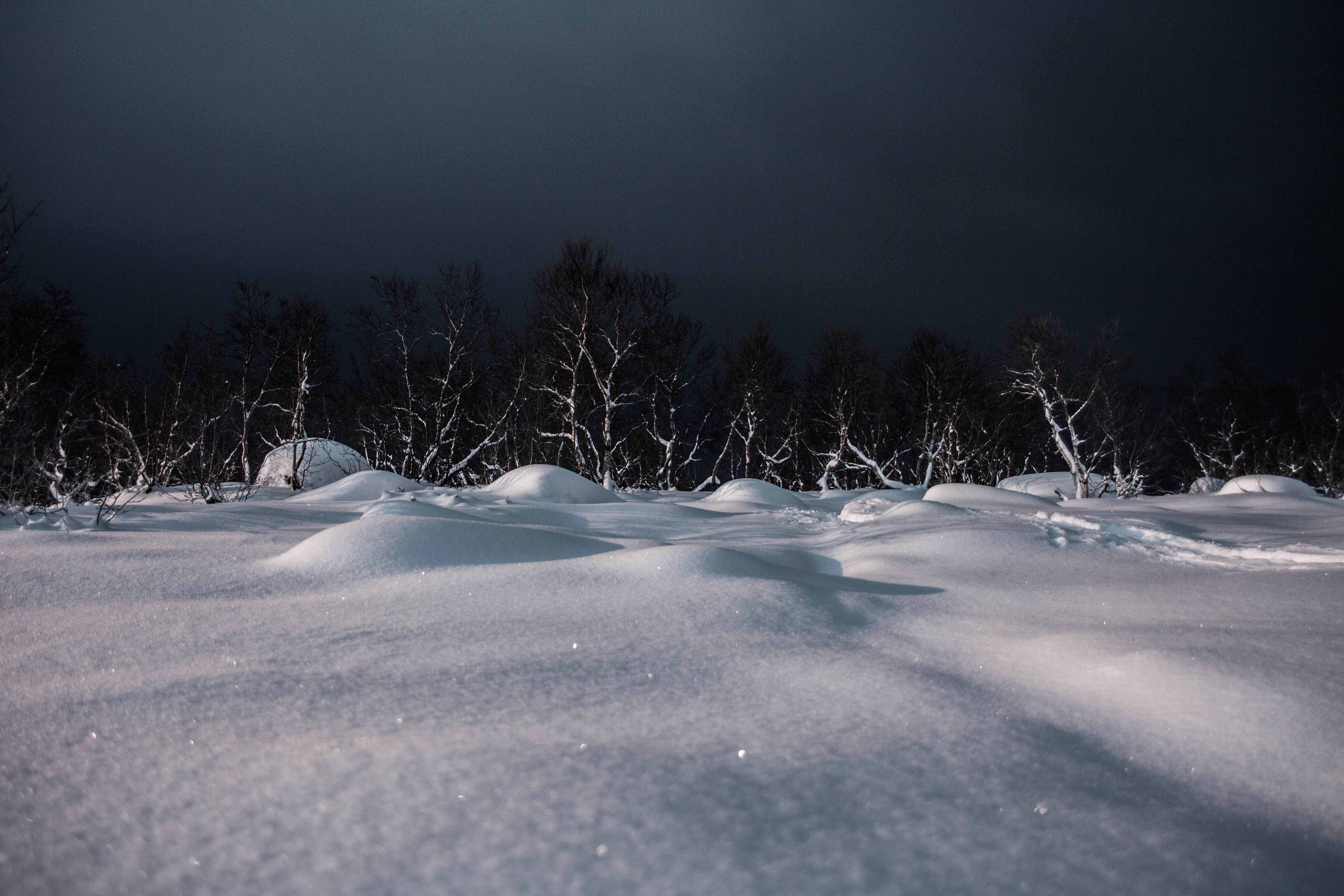 ночь, облачно, деревья, сопки, пейзаж, снег, зима, Алёна Салтыкова