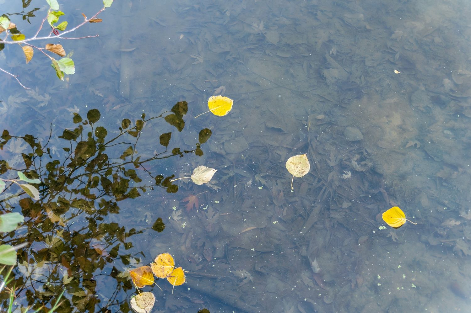 На воде осеннего пруда