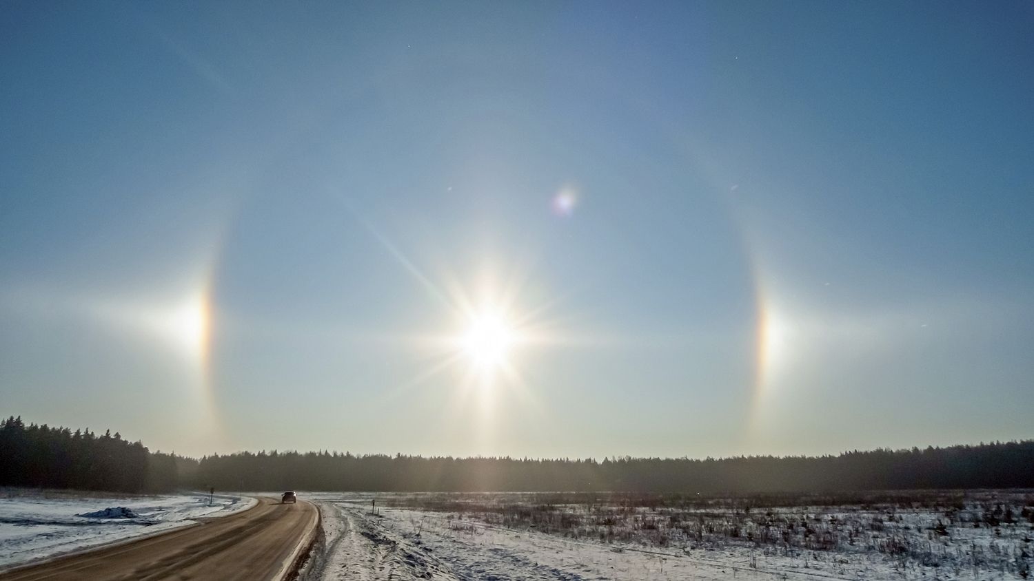 Оно появляется в морозную погоду в условиях повышенной влажности. В воздухе при этом находится большое количество ледяных кристаллов. Проходя сквозь них, солнечный свет преломляется особым образом, образуя дугу вокруг Солнца.