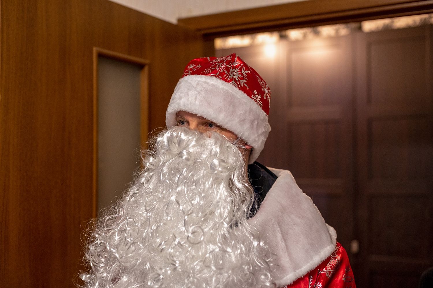 Сын нарядился Дедом Морозом и пришёл с внучкой поздравлять с Новым Годом и Рождеством. А наша собака по кличке Аюми сразу его узнала)