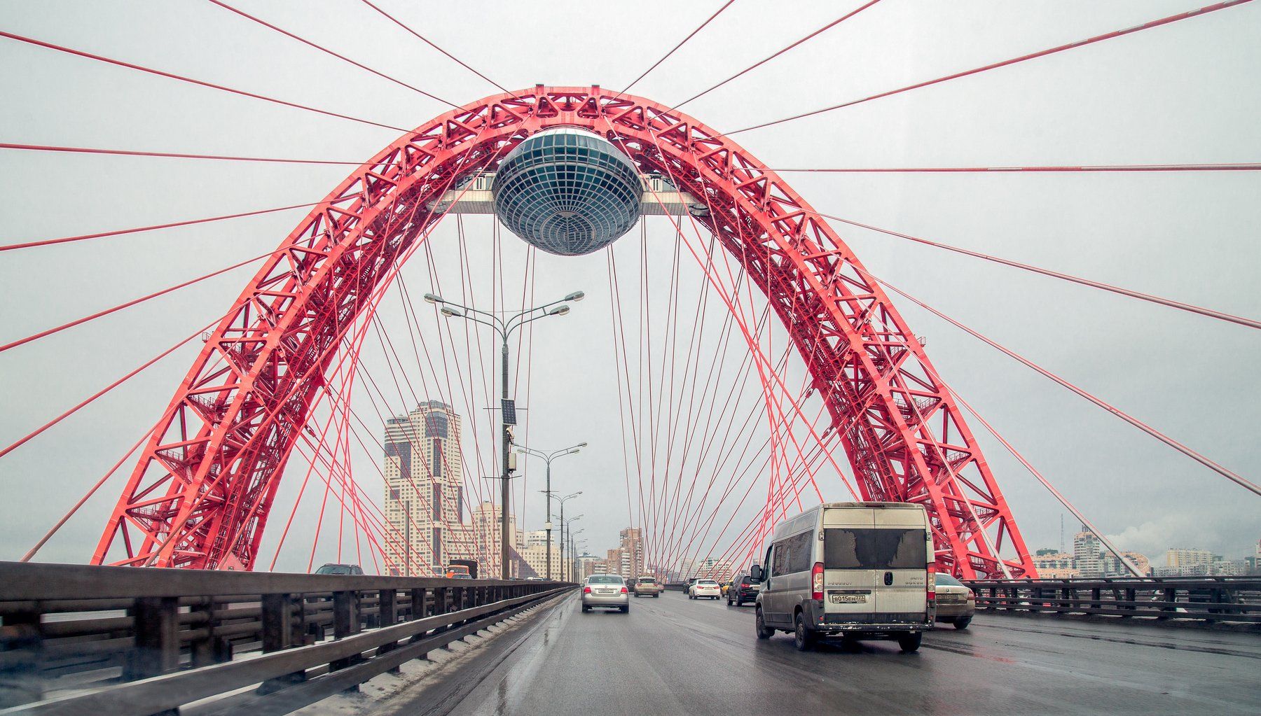 Конструкция моста не имеет аналогов не только в России, но и в мире. Пилон, то есть опора сооружения, имеет форму арки. К ней подвешено дорожное полотно, которое поддерживают прикрепленные к арке ванты (ванты - пучок из высокопрочных канатов, заключенных в оболочку - полиэтиленовую трубу). Их здесь 72.