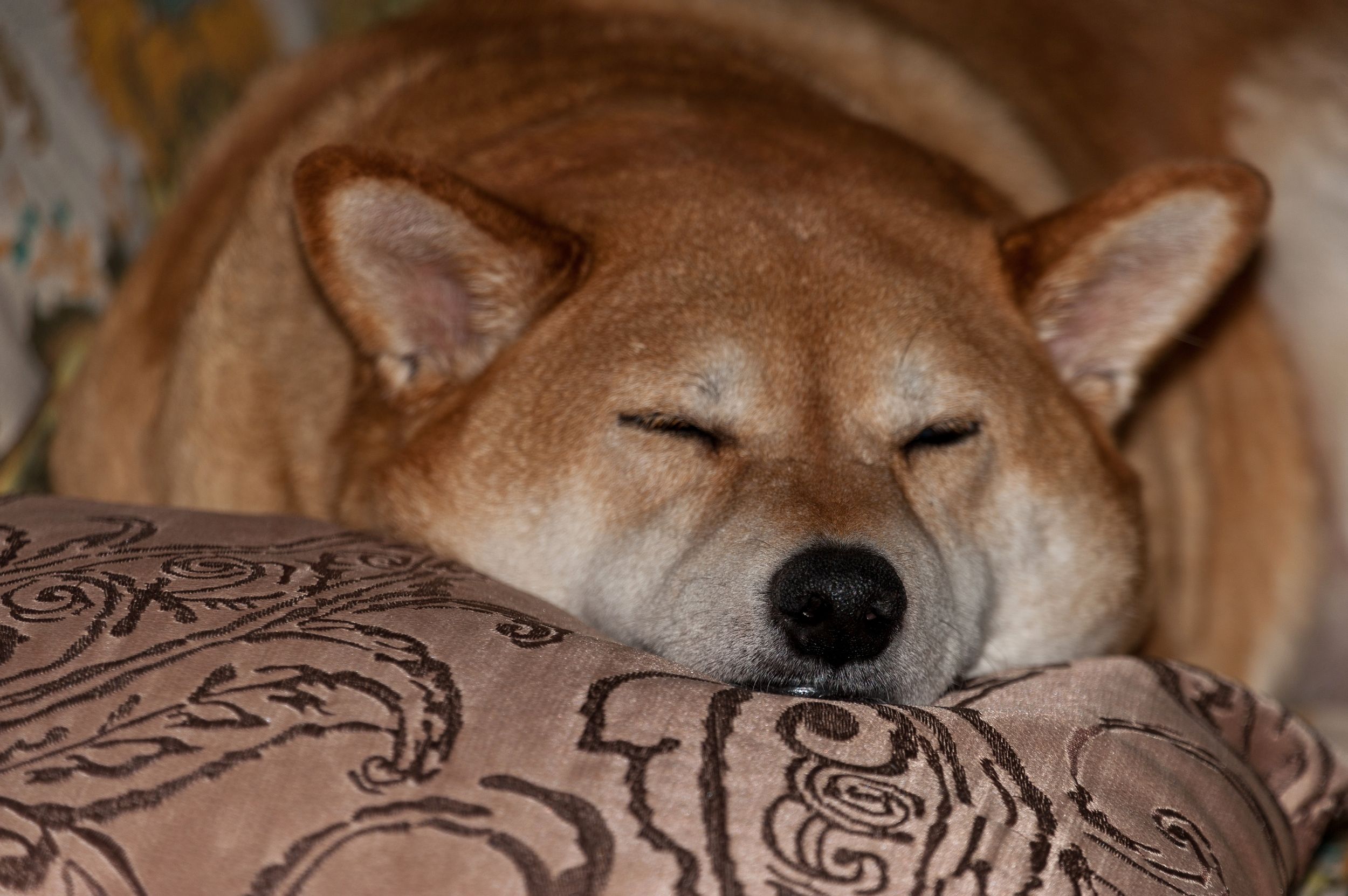 Спит, но всё слышит.И у меня был Джим,рыжая лайка, умный красавец, благородный,но на диване любил поваляться. Я даже книжку о нём написала: "Жили- были кот и пёс". А Вам не хочется написать? Вы мастер слова!