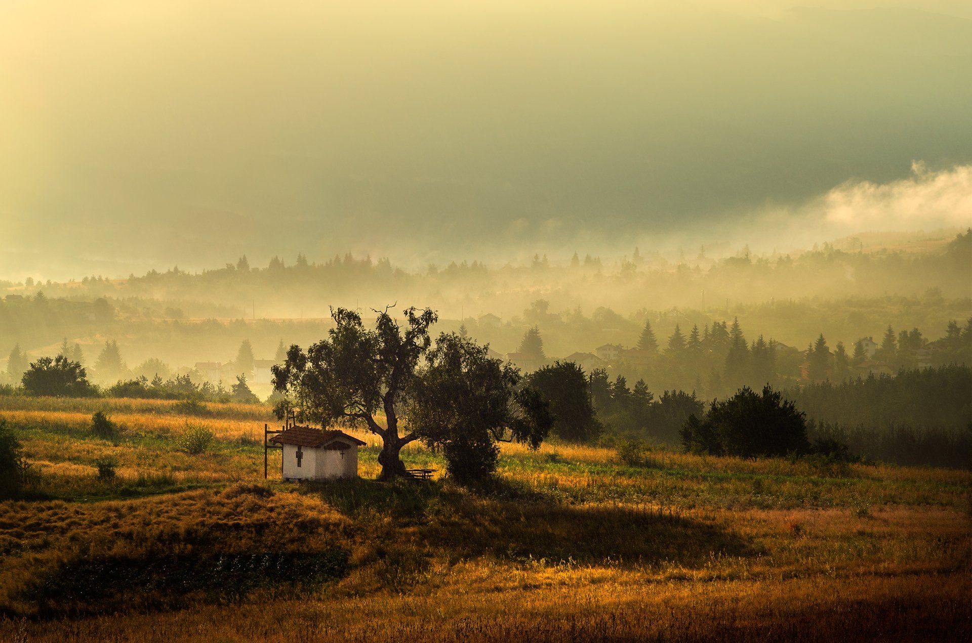 landscape nature sunset foggy scenery chapel mountain vitosha plana bulgaria закат пейзаж, Александър Александров