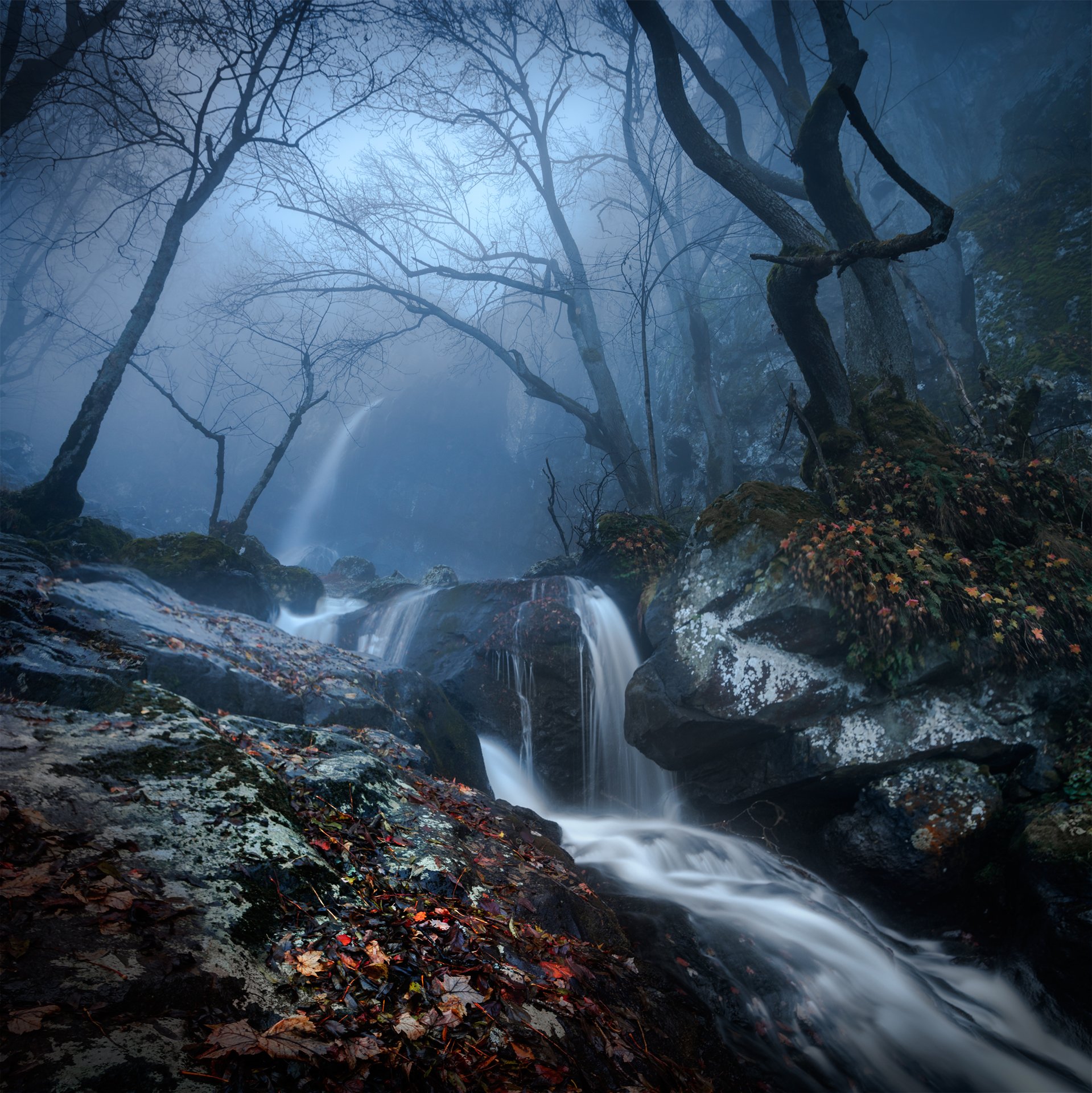 В поздний ноябрьский день в горах Витоши туман окутывает лес, превращая пейзаж в сказочную грусть. Берёзы стоят без листвы, а водопад, спускающийся по мху и камням, создает ощущение вечного движения. Осенние листья, упавшие на влажные скалы, добавляют оттенки красного и коричневого. Фотограф Александър Александров запечатлел эту тихую, почти мистическую атмосферу, где природа кажется одновременно живой и заброшенной.