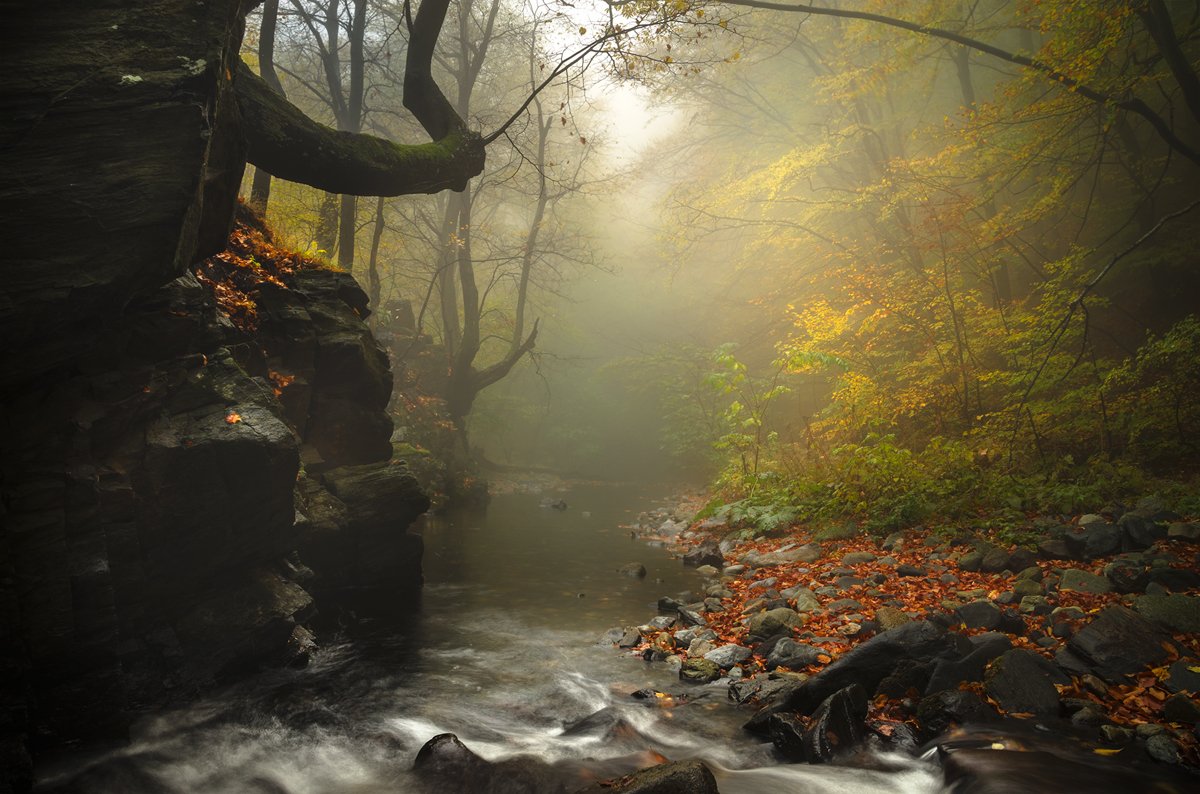 landscape nature scenery forest wood  autumn mist misty fog foggy river mountain staraplanina bulgaria туман лес, Александър Александров