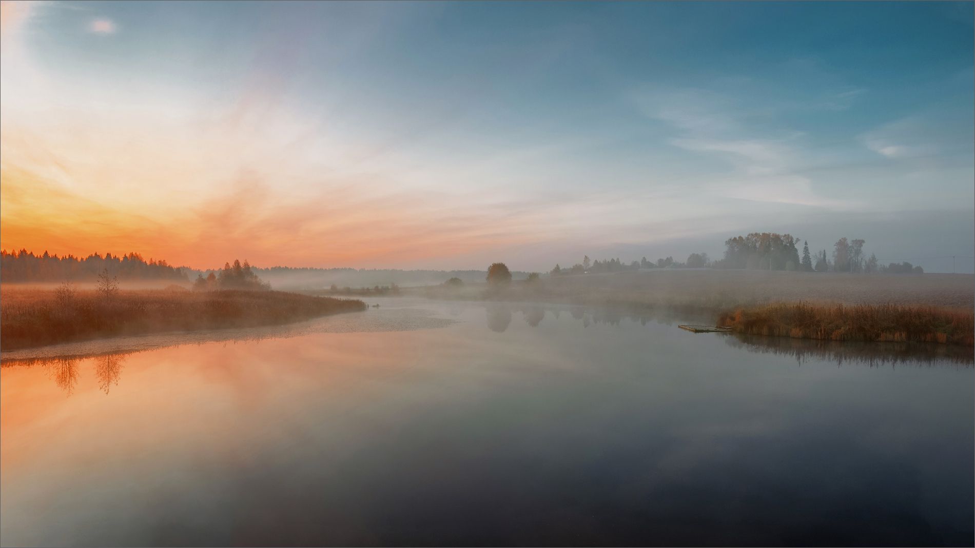 пейзаж, утро, туман, река, отражения, свет, цвет, деревня, осень, александр никитинский, Никитинский Александр