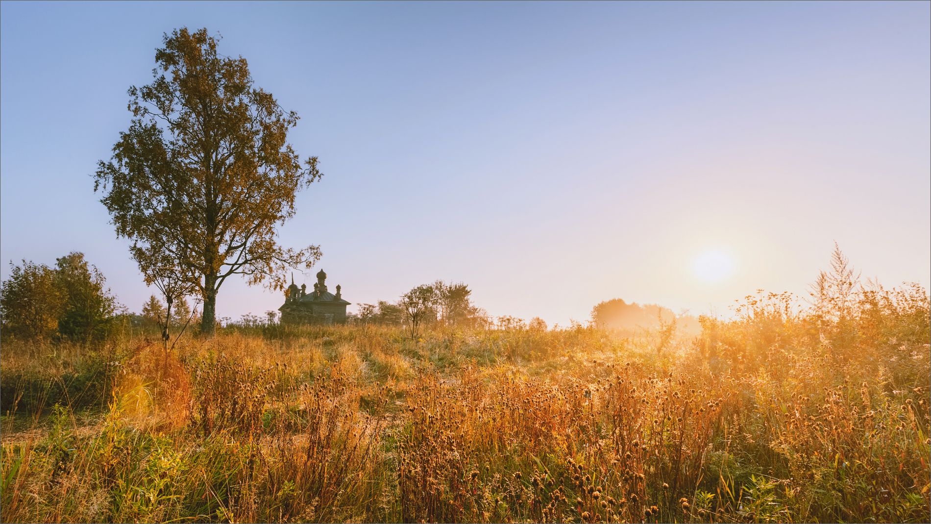 пейзаж, осень, туман, часовня, поле, небо, свет, цвет, рассвет, александр никитинский, Никитинский Александр