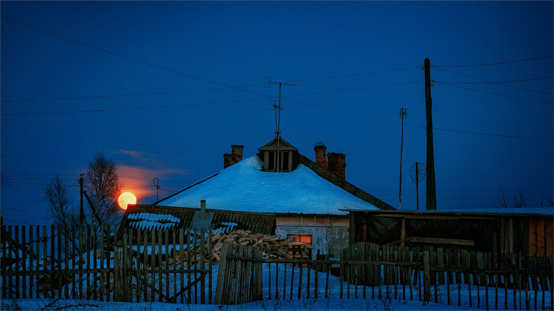 пейзаж, зима, ночь, деревня, луна, свет, цвет, александр никитинский, Никитинский Александр