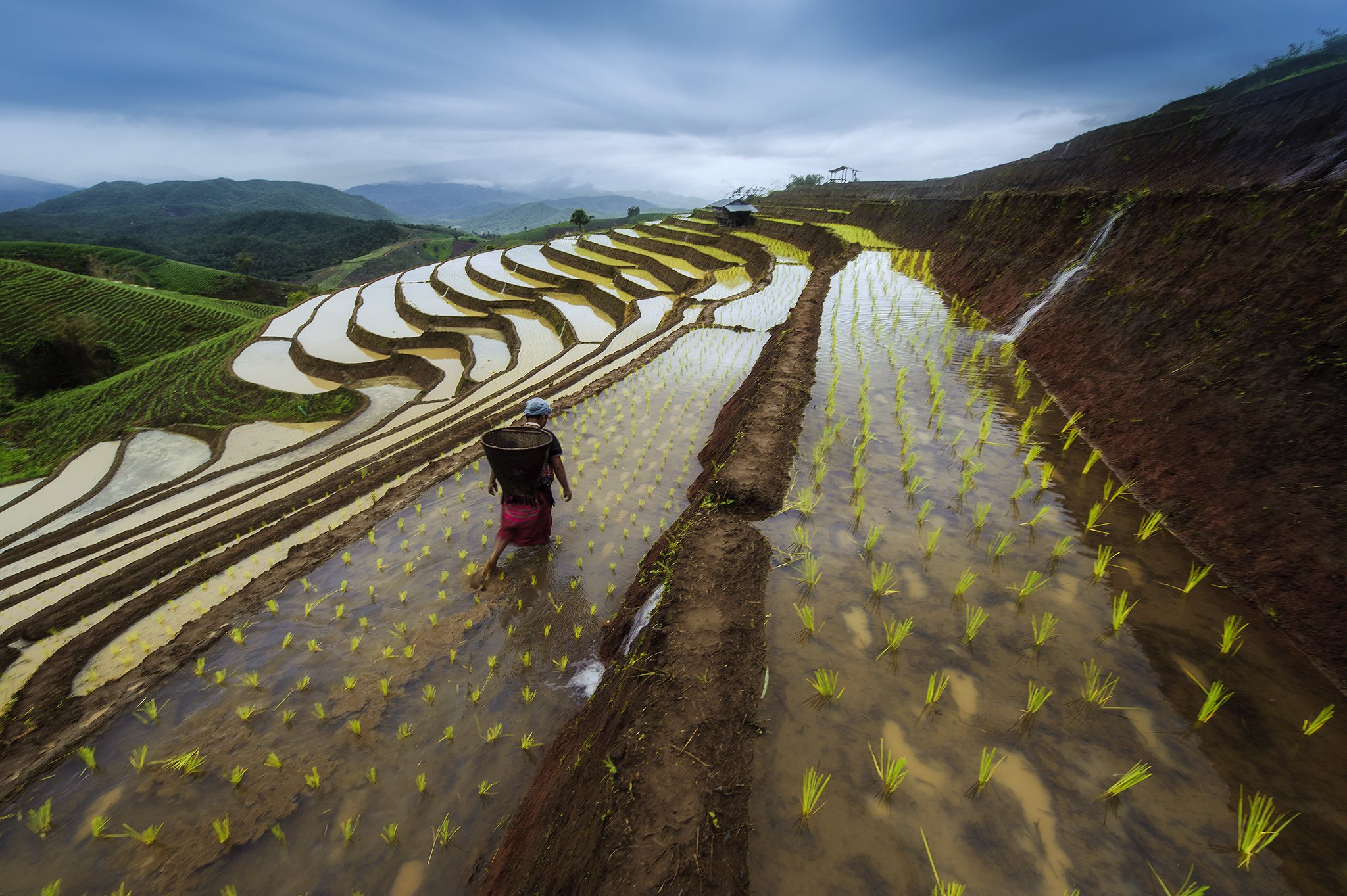 Asia, Asian, Blue, Clouds, Culture, Field, Green, Paddy, People, Rice, Sky, Terraces rice field, Saravut Whanset