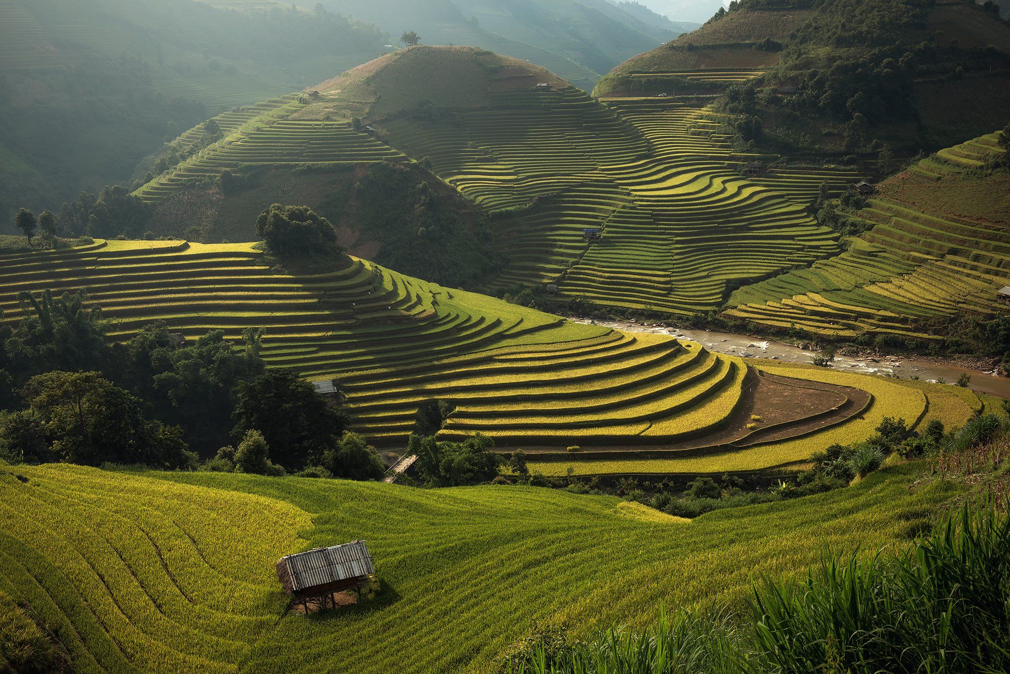 Color Image, Grass, Horizontal, Landscape, Mountain Range, North Vietnam, Outdoors, Photography, Rice - Food Staple, Rice Paddy, Terraced Field, Tranquil Scene, Vietnam, sarawut intarob